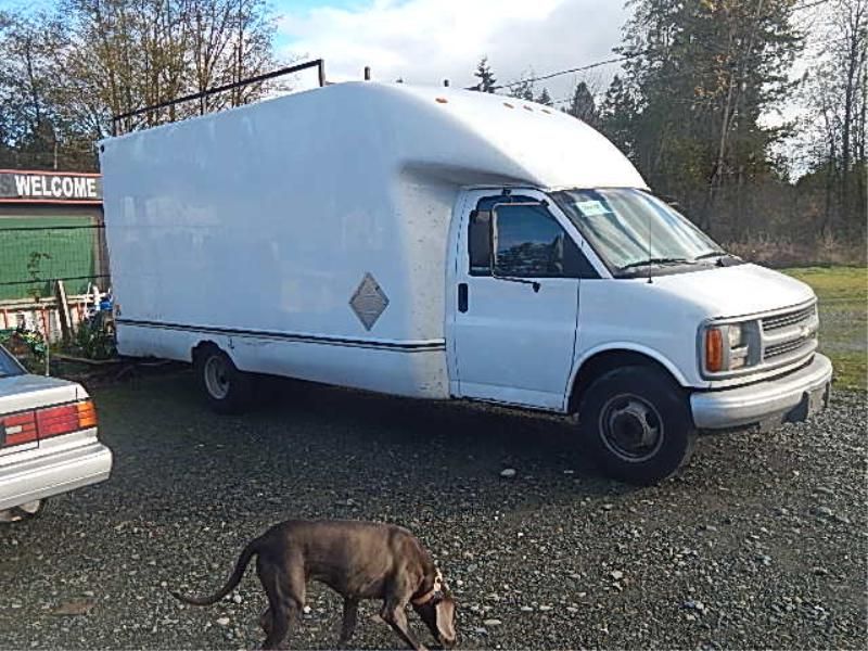 **** STOA - 1999 - CHEV - CUBE VAN - RUNING AND DRIVABLE - GAS - SHELVING FRAMING IN 16' FIBRE GLASS BOX - OUT OF PROVINCE - NEEDS CERTIFICATION - NO B.C. REG NUMBER - ONTAIRIO PAPERS AVAILABLE - AS IT IS HAS NO BC REG. WE WILL BE SELLING IT AS PARTS ONL