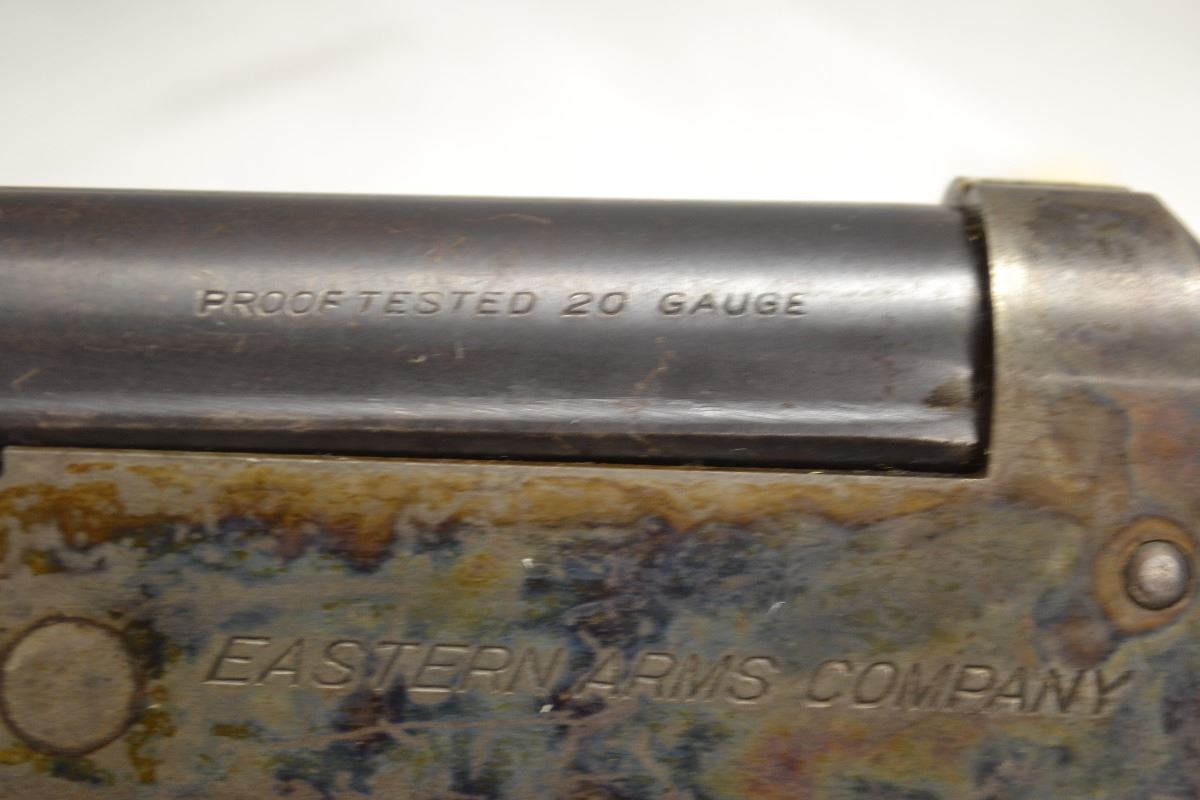 EASTERN ARMS, Single shot, 20 GA Shotgun, 28” Barrel with fixed full choke, Wood dented, Bluing has pitting, Case Hardening on receiver,Bore Excellent, Condition 7/10, SN. NA