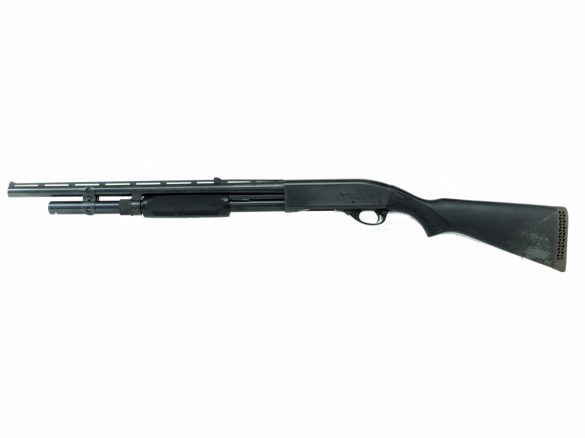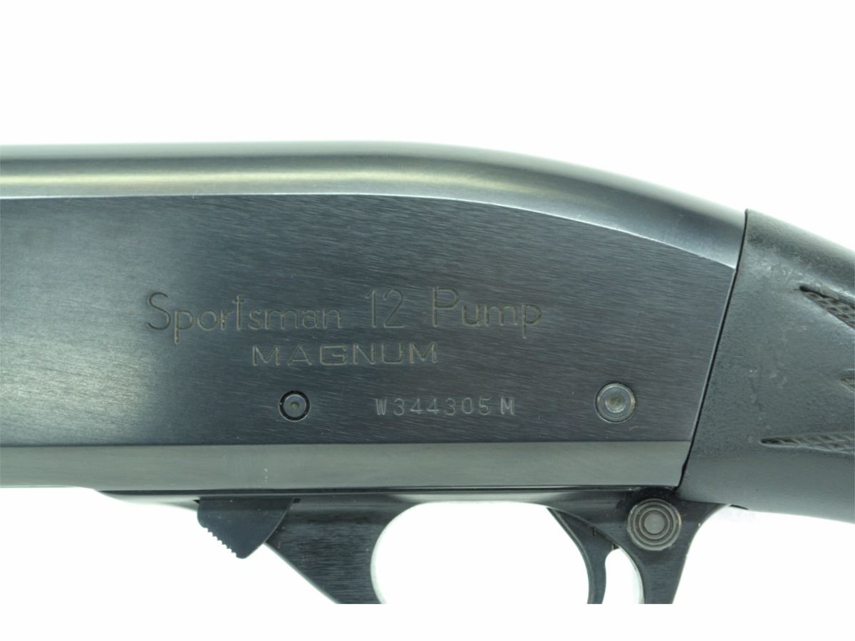 REMINGTON, Model Sportsman 12 Magnum, CAL 12GAx3”, Blued Finish. Action Pump, Raised vent rib Barrel. Barrel Length 530MM, Comes with original spring and end cap, Oversize safety button, Has Mag tube extension and Pachmayr forestock and pistol grip, Set up for tactical, Synthetic Stock,Condition 6.5/10. SN. W3443XXX