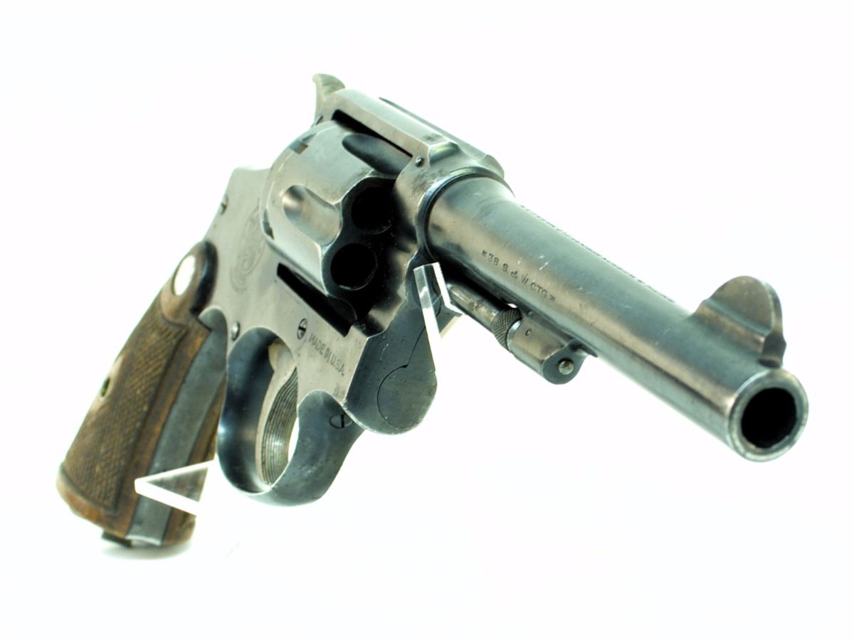 SMITH & WESSON, Model: H.E 38 Military And Police MOD 3 Of 1905 Change 4, CAL: 38 S & W, ACTION: REVOLVER , Barrel Length: 127MM, 6 Shots, CND BRD Arrow Marked, Fixed Sights, Lanyard Loop, Double Action, Condition: 8/10, SN.821XXX