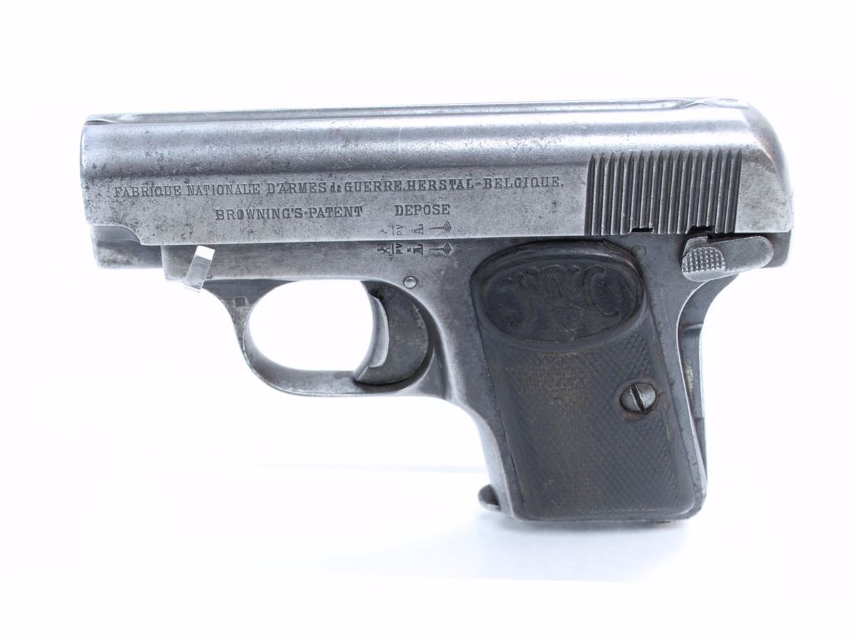 FN BROWNING, Model 1906, Caliber 6.35MM, Action Semi Automatic Handgun,Barrel Length 53MM, Comes with Clip, Condition 5/10, Canadian Prohibited Class, SN. 297XXX