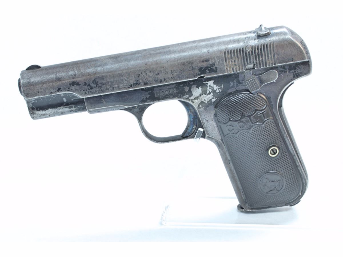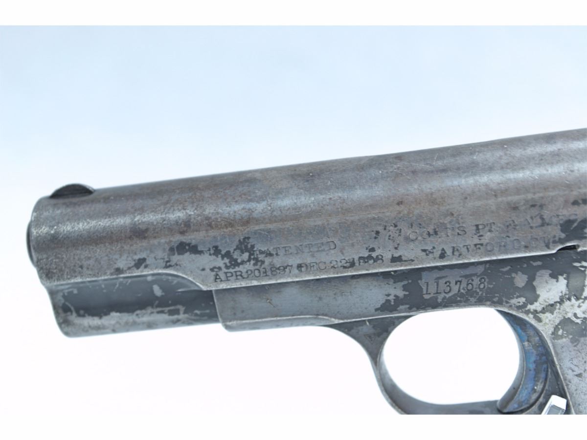 COLT, Model 1903 Pocket Hammerless, Caliber .32, Action Automatic Pistol, Barrel Length 102MM, Comes with Mag, Fixed Sights, Plastic Grips, Previous U.S Firearms, Condition 7/10, Canadian Prohibited Class, SN. 113XXX