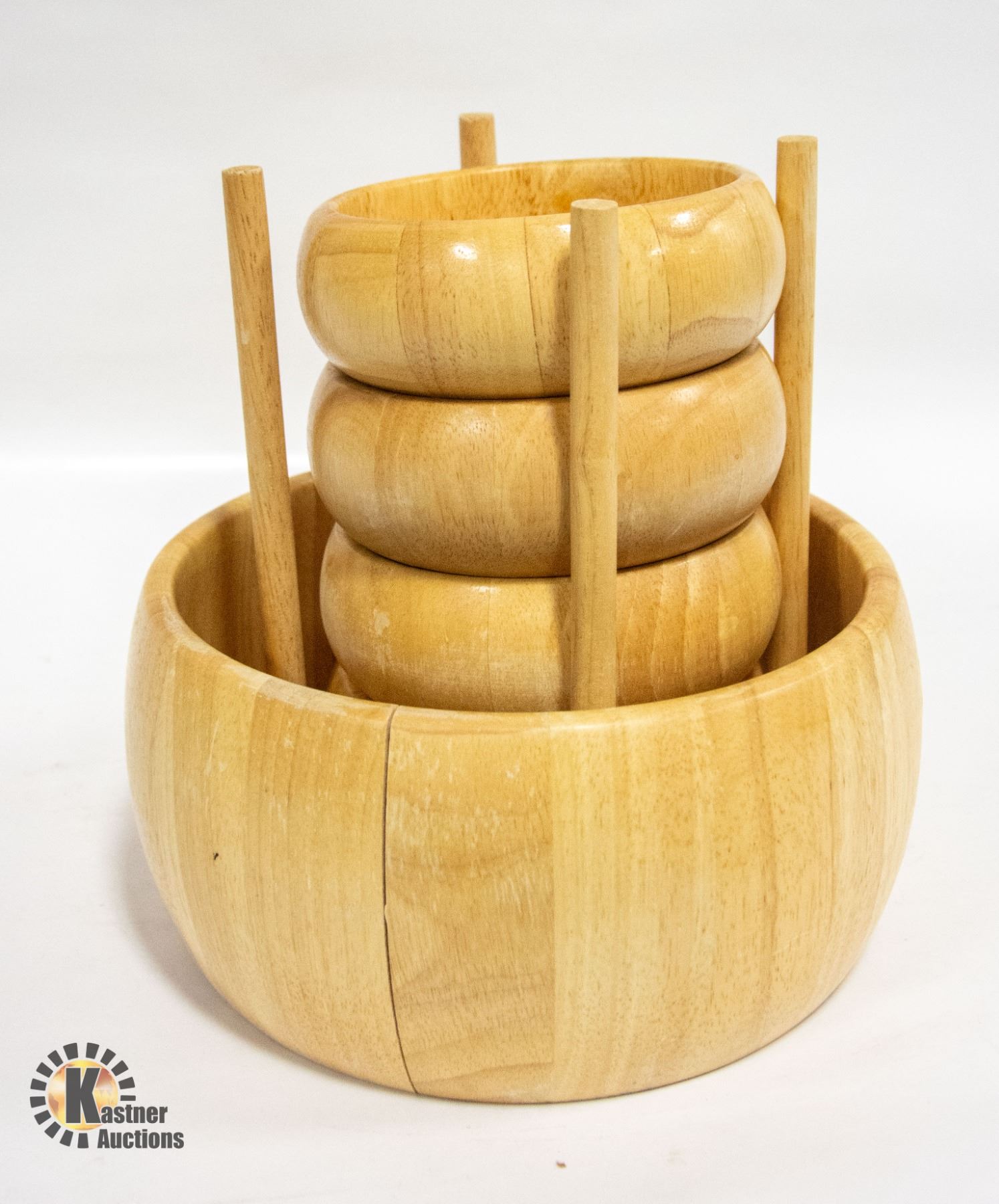 STOKES LARGE WOOD BOWL & 4 SMALL BOWLS