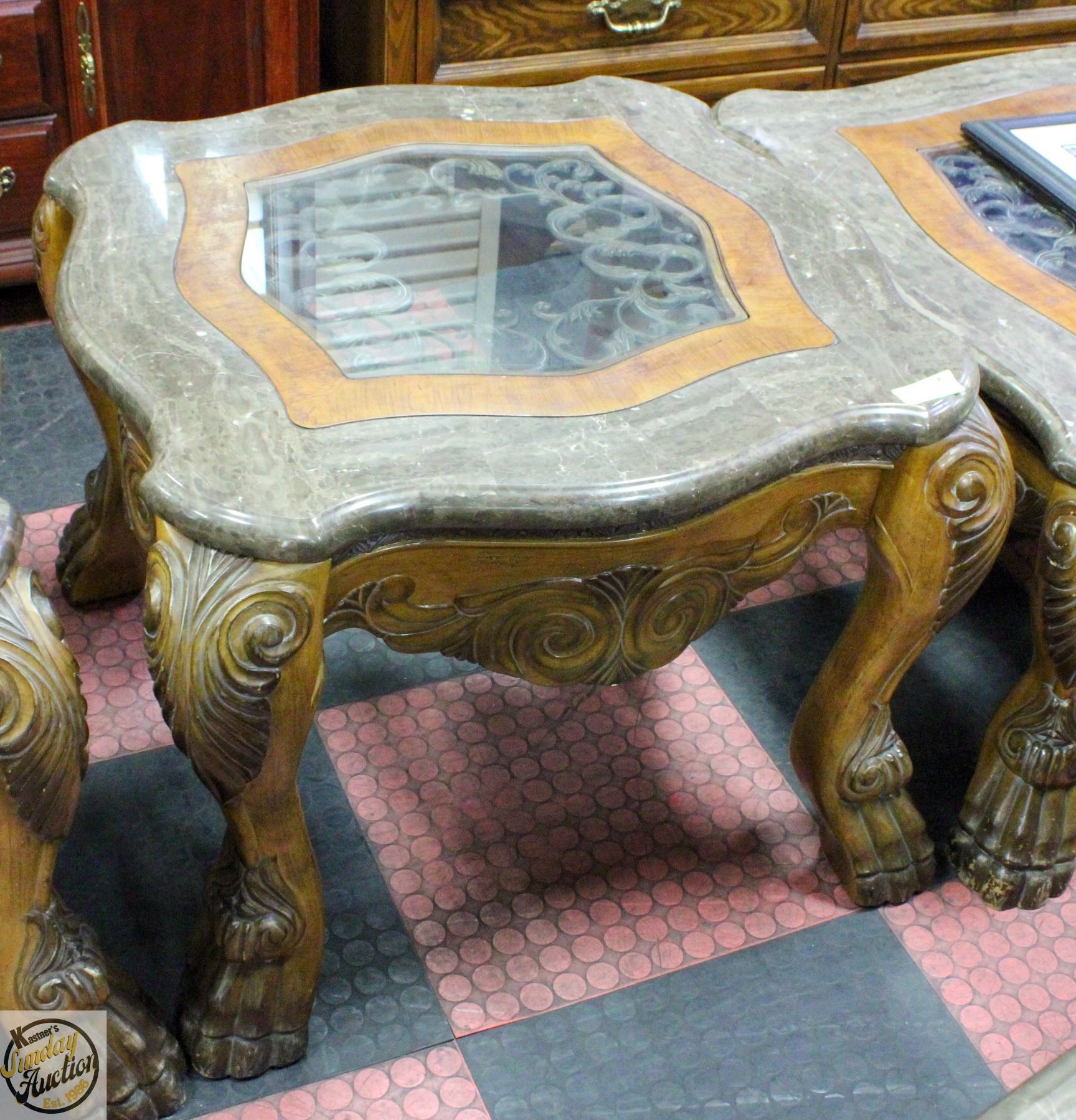 STONE/GLASS TOP SIDE TABLE 30  X 32  X 24