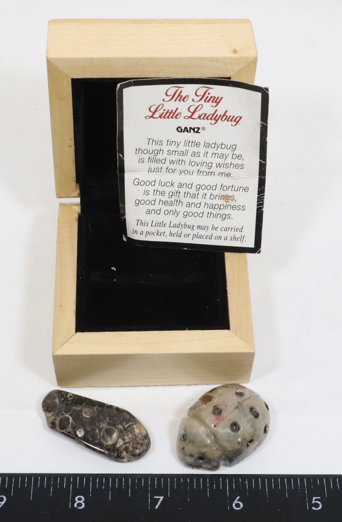 STONE LADYBUG IN GIFT BOX WITH PAPERWORK