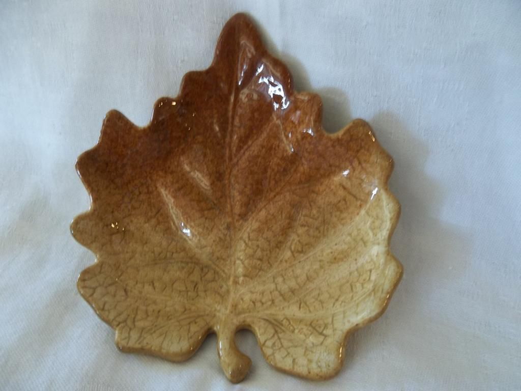 STONEWARE BROWN LEAF DISH BY RUSS, AUTUMN SETTINGS COLLECTION, NIB