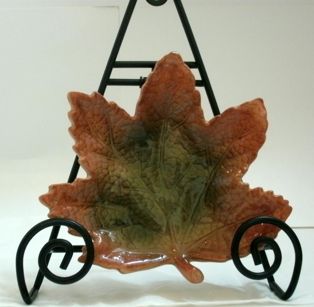 STONEWARE GREEN LEAF DISH BY RUSS, AUTUMN SETTINGS COLLECTION, NIB