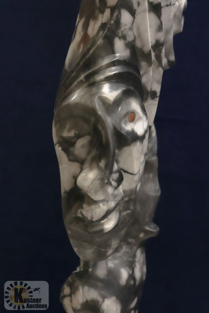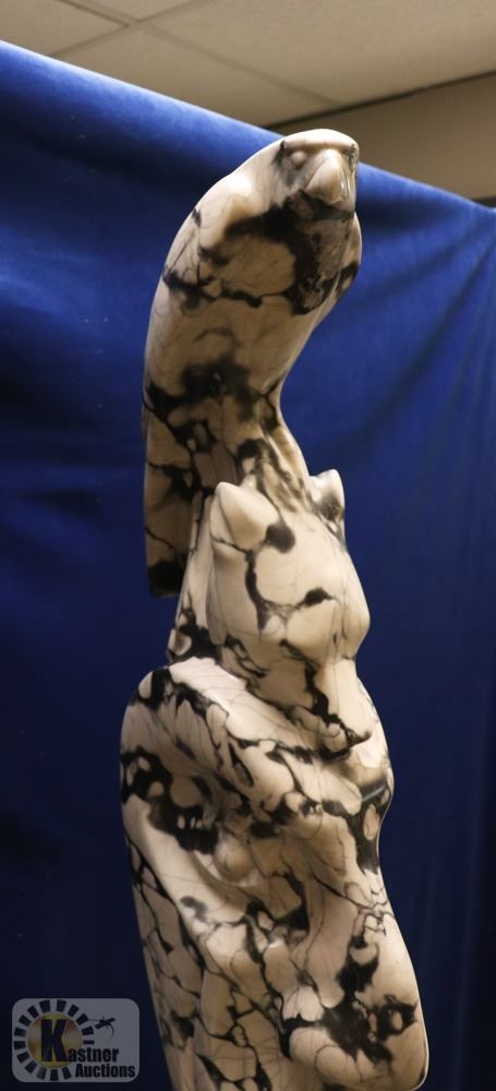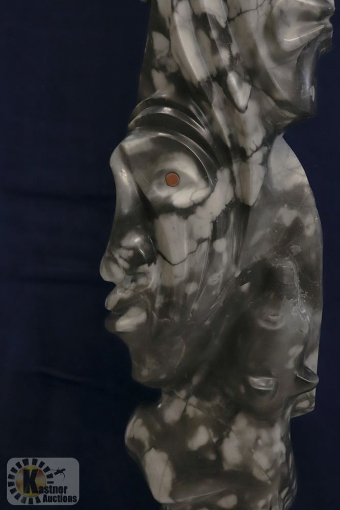 STATUE/TOTEM POLE WITH 16 SPIRITS. BY ARTIST MICHEL BEAUVAIS. APPRAISED INSURANCE VALUE OF $80,000.00 WAS ORIGINALLY SOLD BY A GALLERY FOR $52,380.95. WEIGHS APPROXIMATELY 211 LBS. COLLECTIBLES