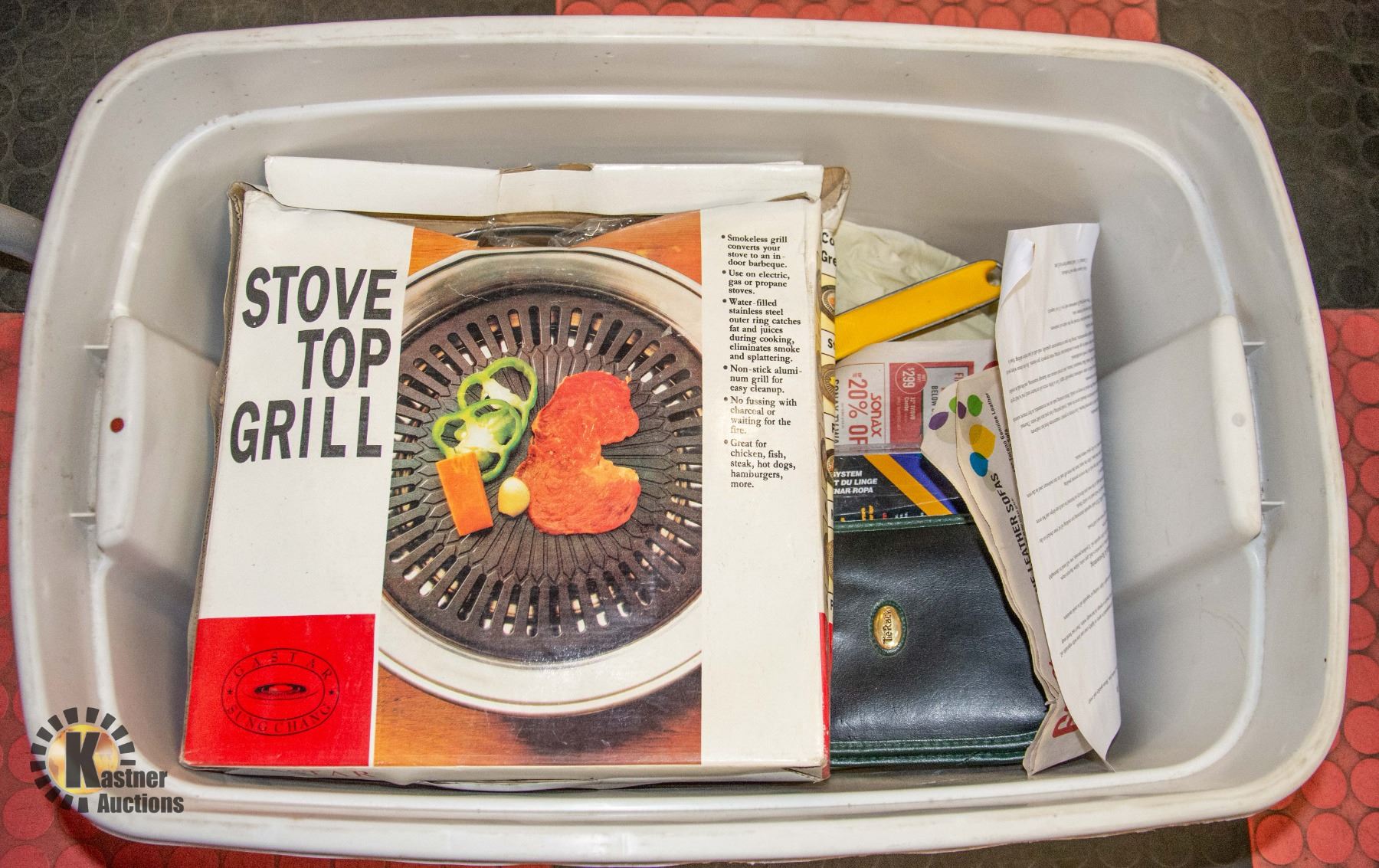 STORAGE TOTE W/SERVING TRAY, STOVETOP GRILL + MORE