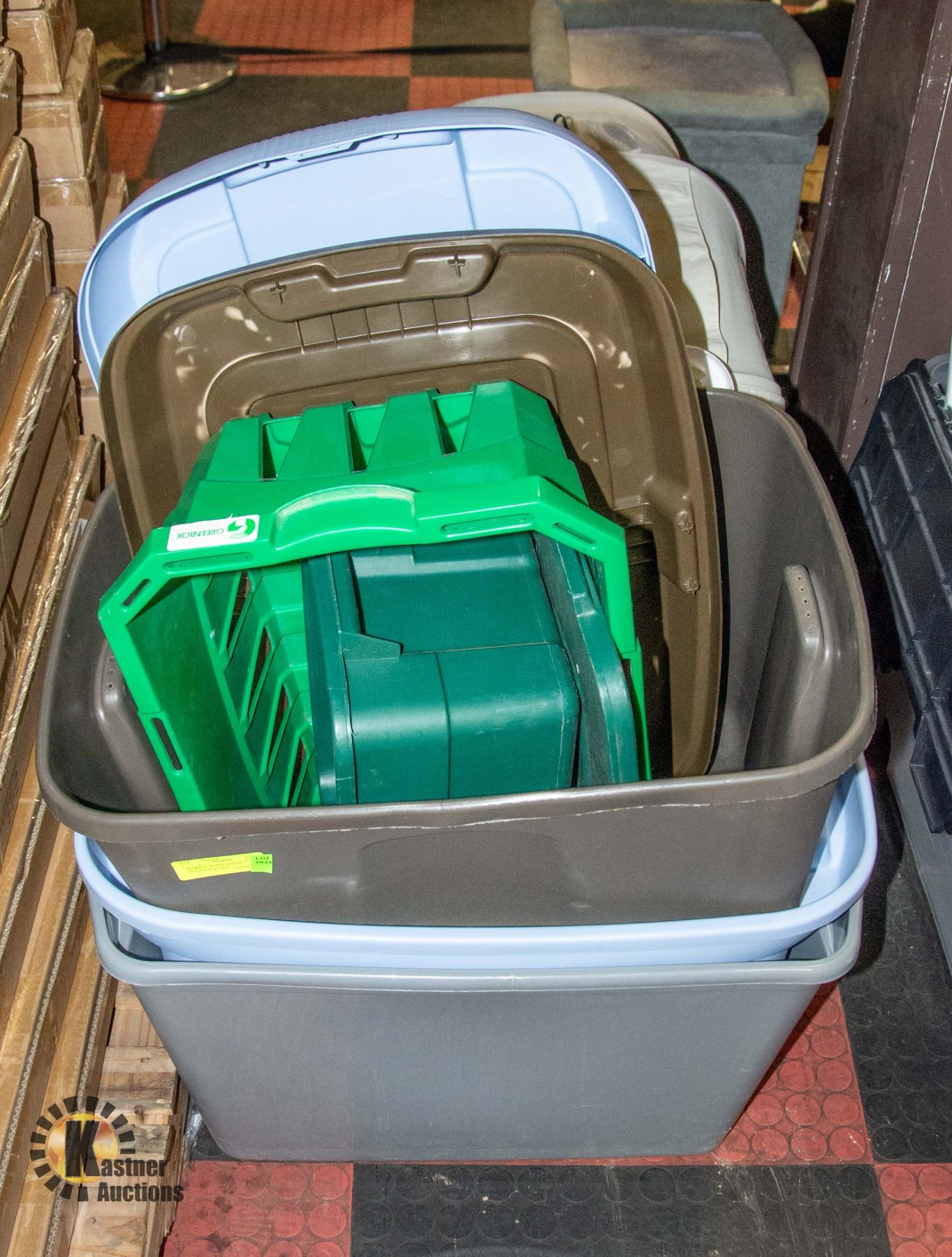 STORAGE TOTES- LOT OF 5 ASSORTED W/LIDS