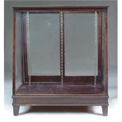 STORE FLOOR STANDING SLANT FRONT SHOWCASE. Glass display case includes two shelves with beveled glass top. SIZE: 50” w. x 23” d. x 45” h. CONDITION: Good. PF 1-3347 (400-600)