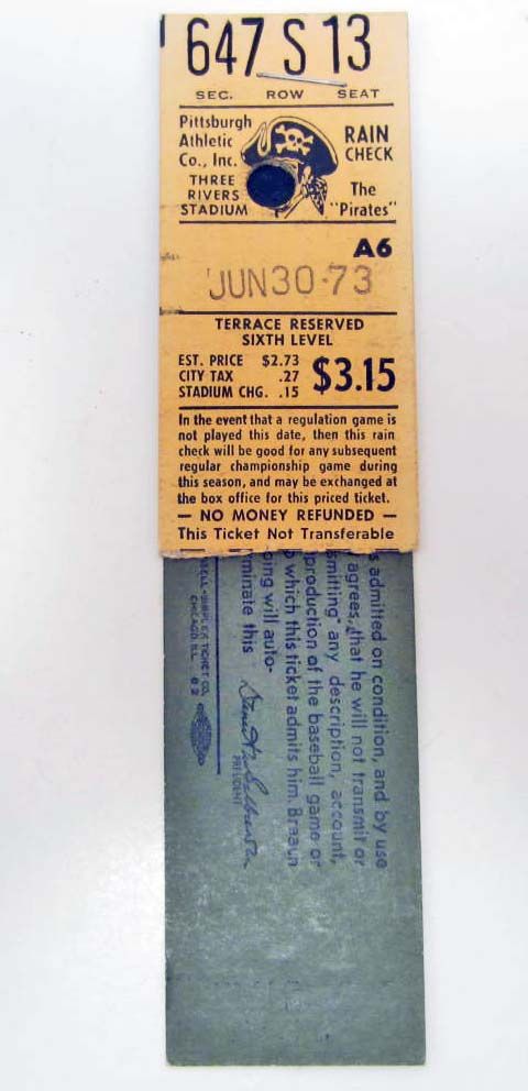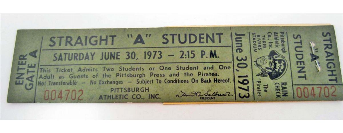Straight "A" Student - Pittsburgh Athletic Co. Three Rivers Stadium Ticket to the Pittsburgh Press and the Pirates.