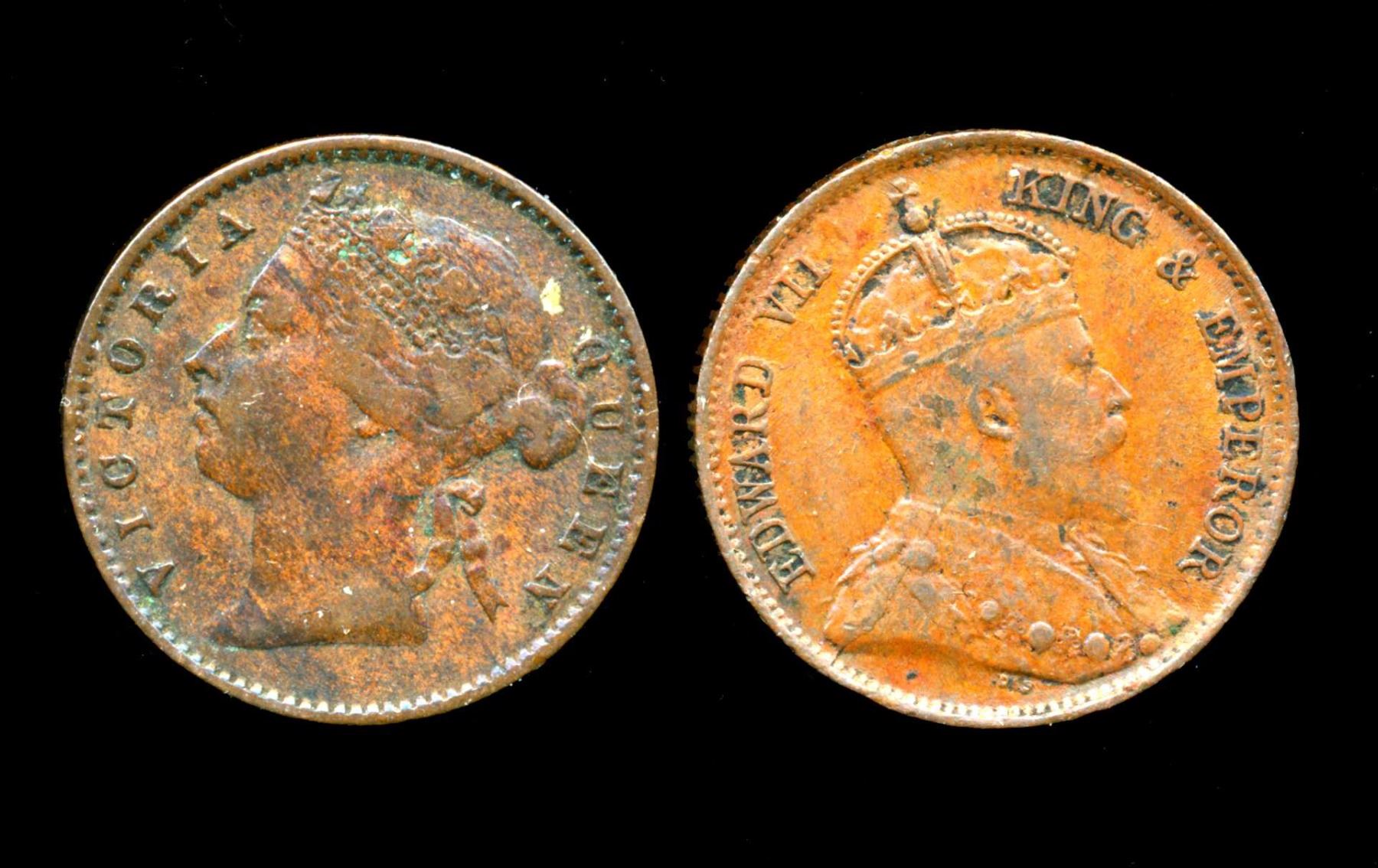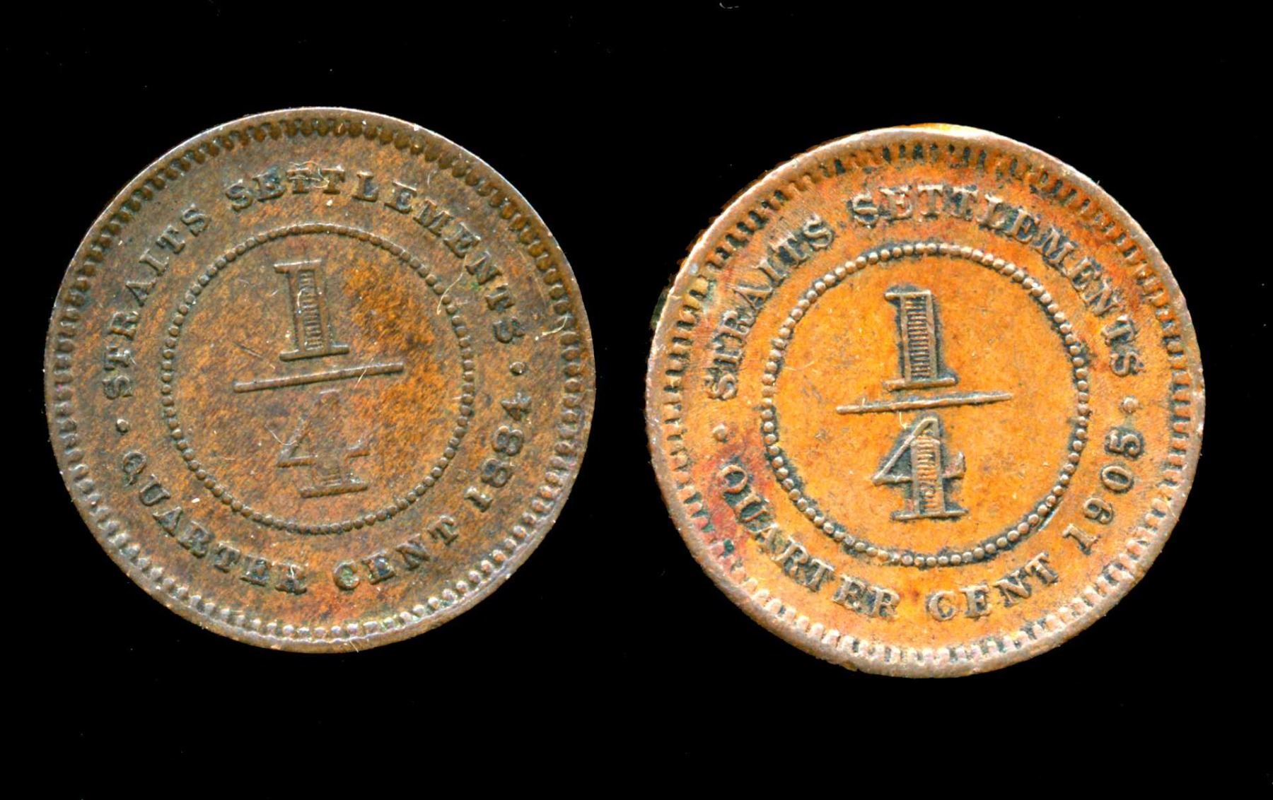 STRAITS SETTLEMENTS 1/4 Cents 1884-1905 A Pair of Coins