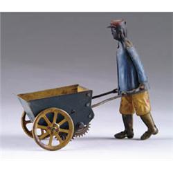 STRAUSS “TIP TOP” THE BLACK PORTER. Black porter dressed in knickers pushes hand car. SIZE: 6" t. CONDITION: Good and working. 1-1977 WP