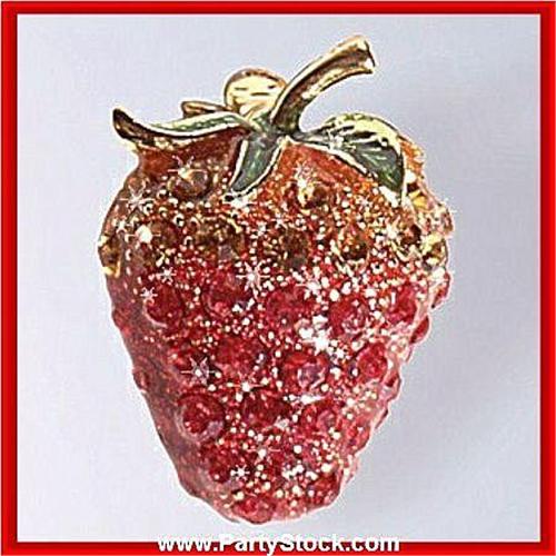 STRAWBERRY PIN BROOCH 24K GOLD SWAROVSKI CRYSTALS