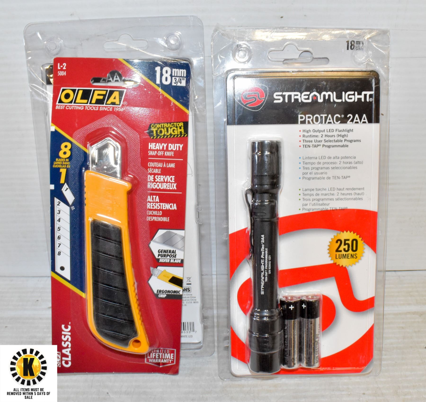 STREAM LIGHT PROTQAC 2AA LIGHT AND OLAF HEAVY DUTY SNAP OFF KNIFE BRAND NEW