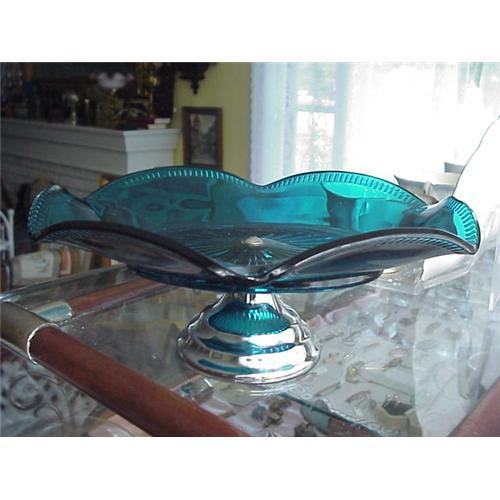 <table width="100%" border="0" cellspacing="0" cellpadding="4"><tr><td><em> </em></td></tr><tr> <td width="100%"> Gorgeous 1920-40s teal blue glass comport with a silver plate stand. This is a fabulous Art Deco striking glass centrepiece, the color is just so beautiful and uncommon to find! The piece measures about 9 ¼ inches across being 8 inches wide and standing about 4 inches high. It is in very fine condition, no chips or cracks, just lovely. It is a heavy glass, being nearly about ¼ inches thick with very pretty ribbing pattern along the edge and a starburst like pattern in the centre. A lovely vintage glass piece to decorate and enjoy adding to your glass collection. If you love the Shabby Chic, Romantic Cottage, Victorian, Roses,Limoges,Barkcloth, French Lace and glamour prints such as Harrison Fisher, you may wish to book mark us since we list almost daily! Thanks & Enjoy your day </td></tr><tr> <td> </td></tr><tr> <td>Reference #: CSVDC198</td></tr><tr><td>Condition:Very Fine </td></tr><tr><td>Year:1920-40s</td></tr><tr><td>Title:STRIKING TEAL BLUE GLASS COMPORT DECO</td></tr><tr><td>Location:WA</td></tr></table>