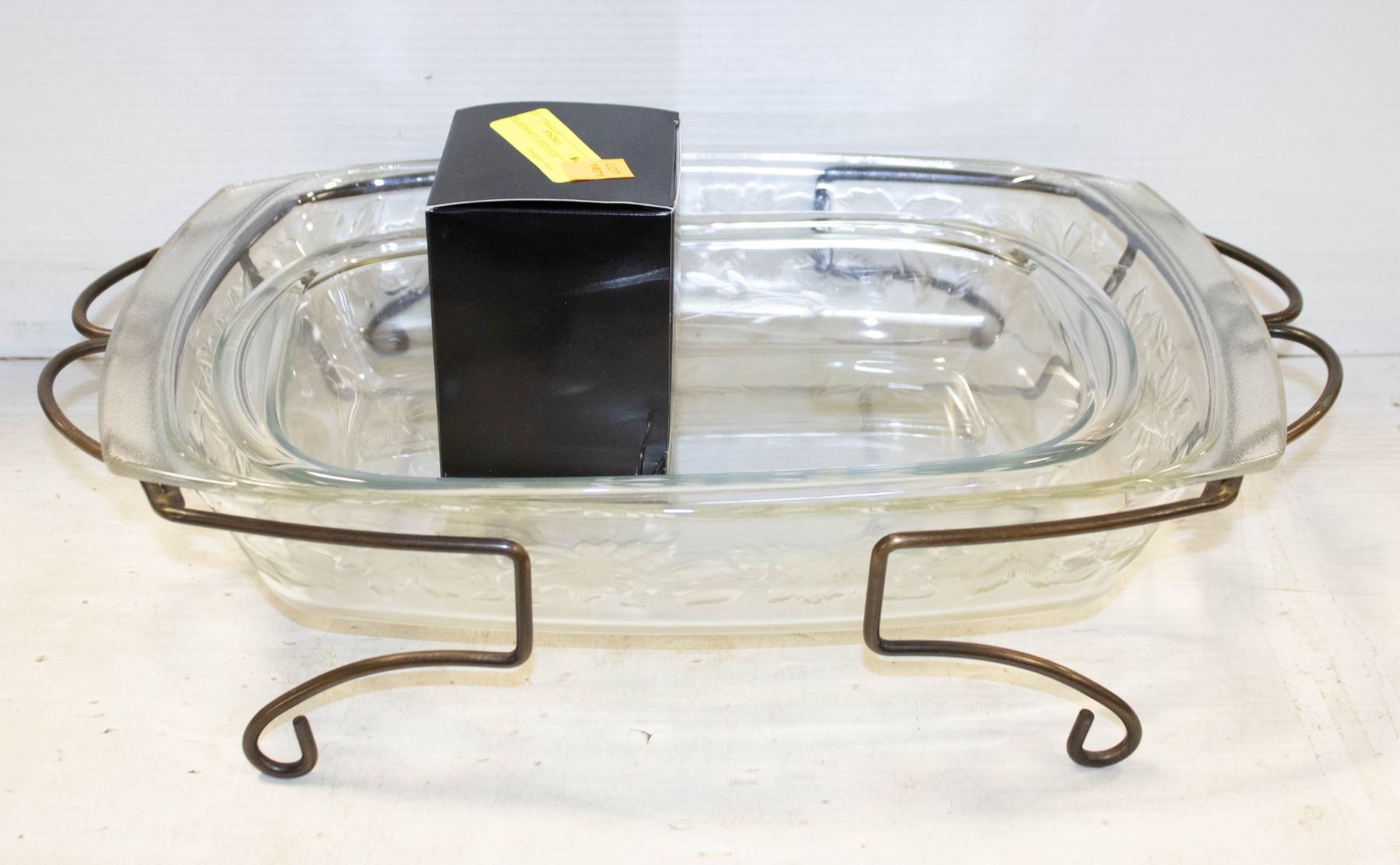 DISH WITH STAND + GLASS CASSAROLE PAN **ALL ITEMS MUST BE REMOVED BY 5PM SATURDAY, FEBRUARY 24TH 2024. ALL REMAINING ITEMS WILL BE SUBJECT TO A $6.00 PER DAY STORAGE CHARGE. ANY ITEMS REMAINING AFTER MONDAY, MARCH 11TH, 2023 WILL BE CONSIDERED FORFEITED. NO REFUNDS WILL BE ISSUED FOR FORFEITED ITEMS. TO SCHEDULE A PICK UP APPOINTMENT CLICK HERE