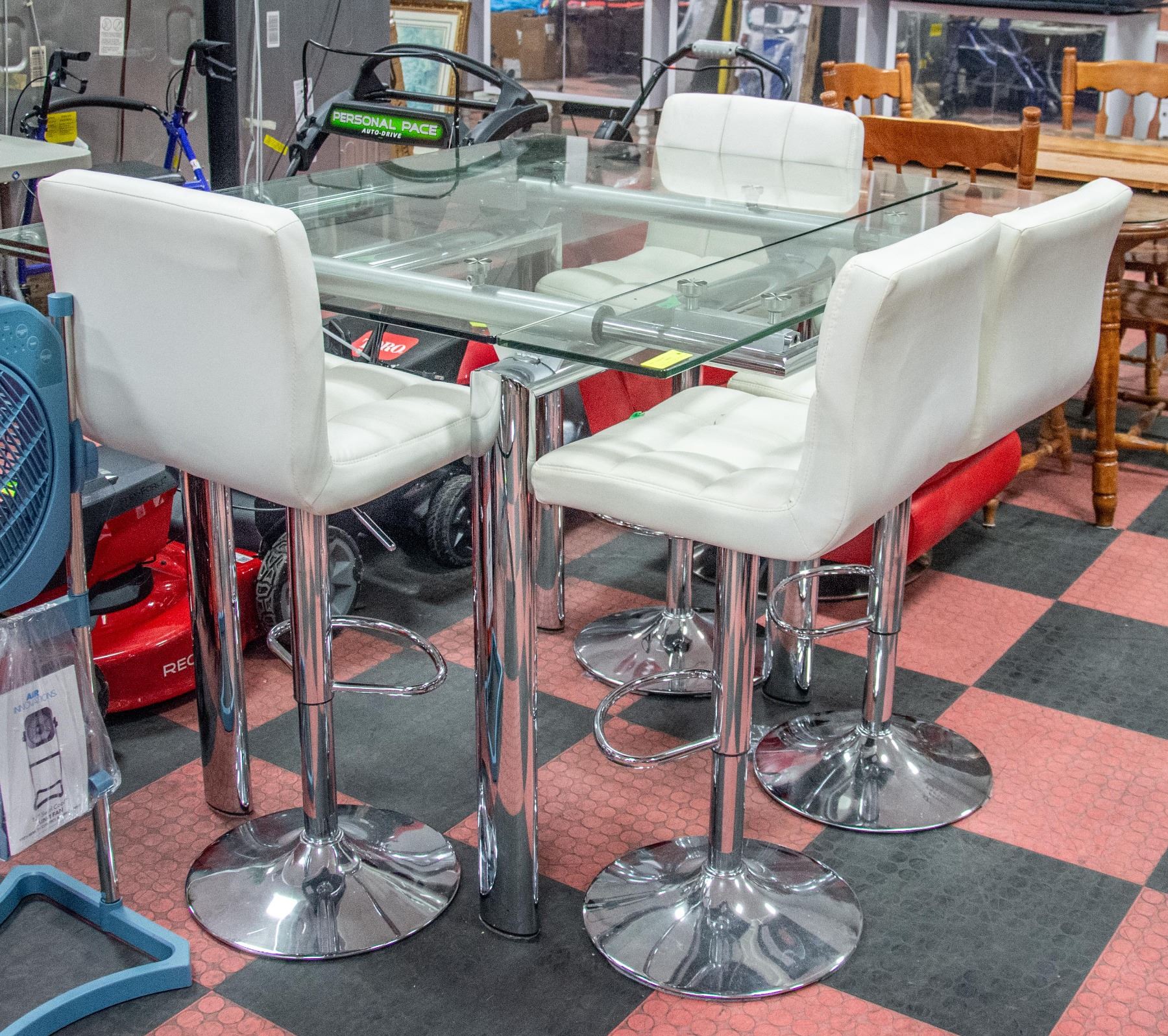 4 WHITE AND CHROME MODERN BAR STOOLS