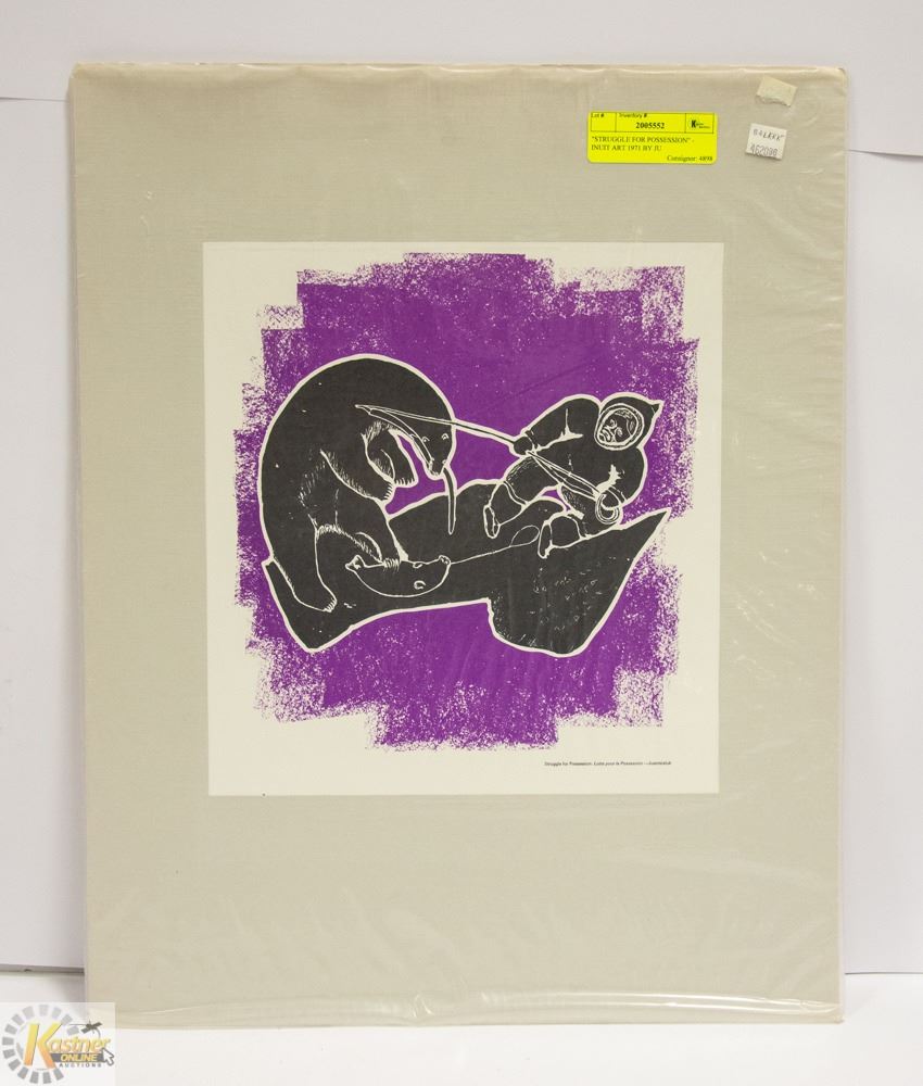 STRUGGLE FOR POSSESSION  - INUIT ART 1971 BY JU