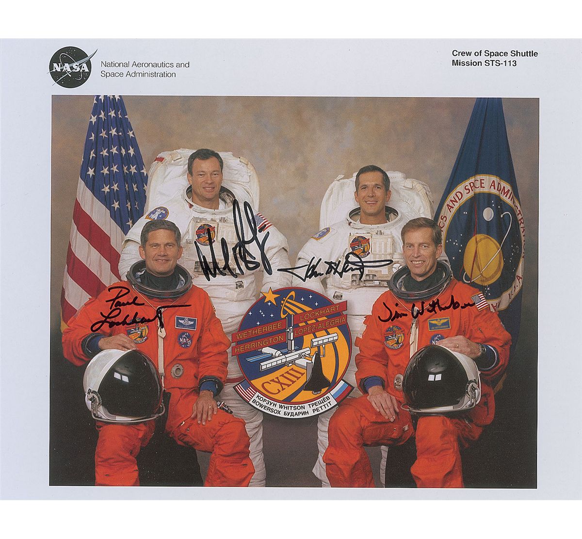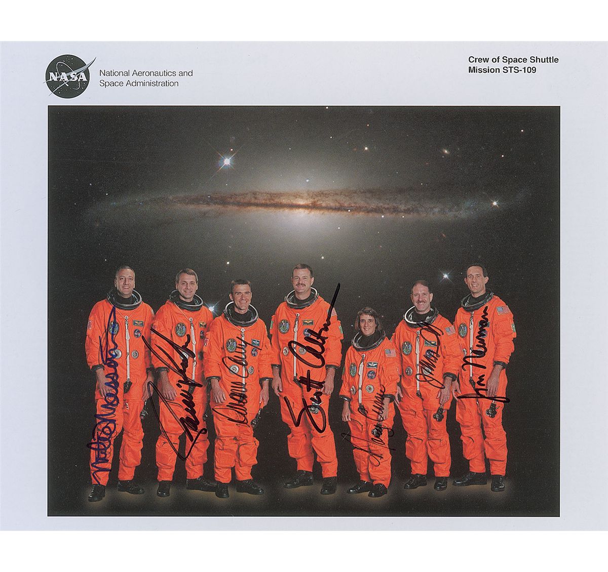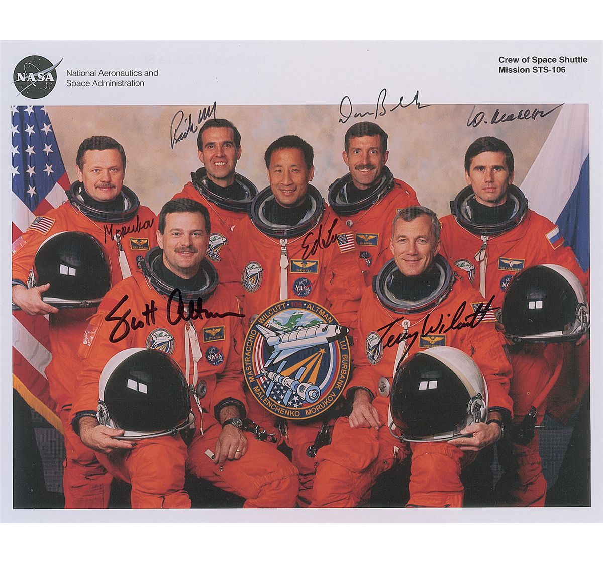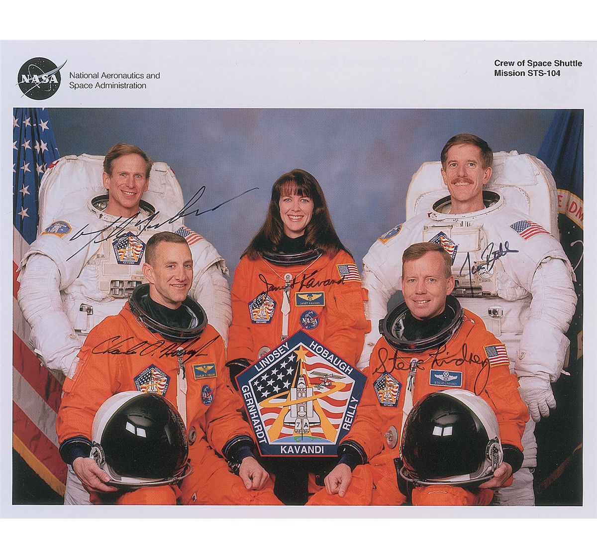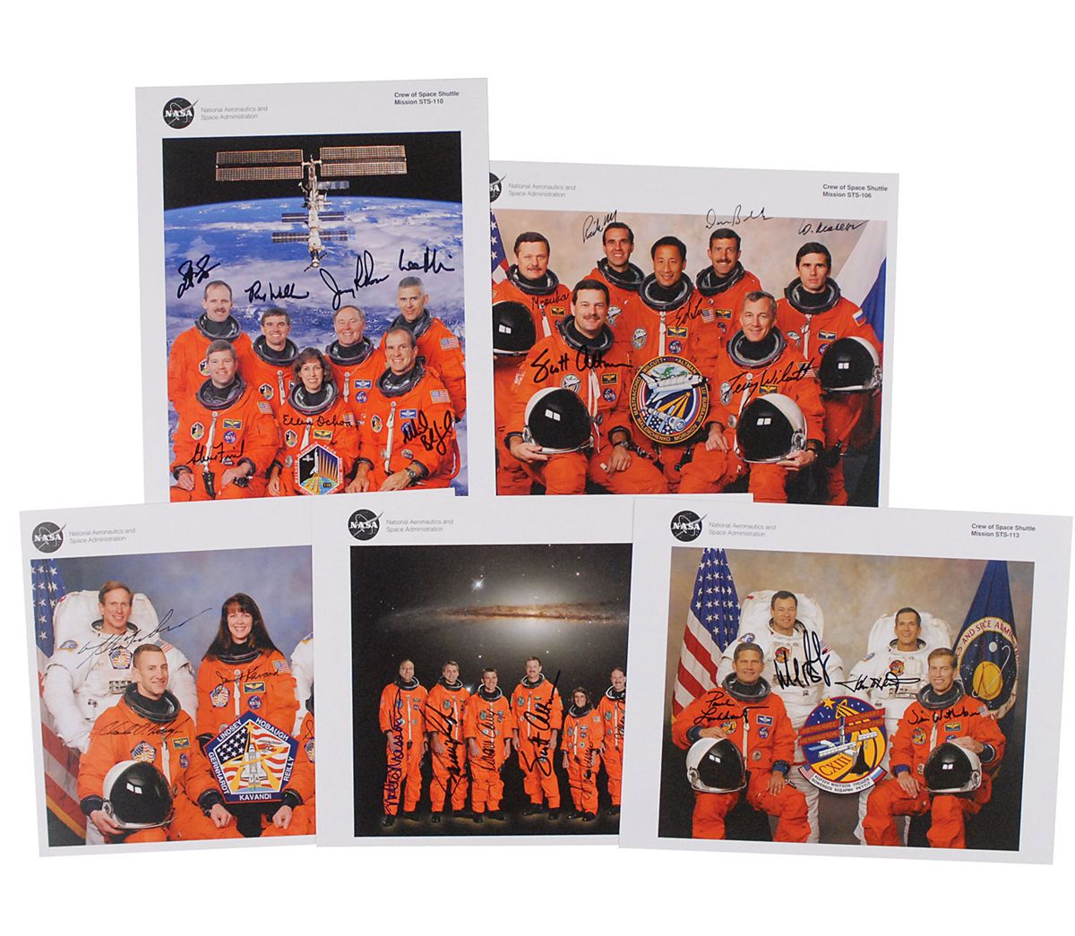 Collection of five official NASA crew photos, 8 x 10 and 10 x 8, each signed in black felt tip by the complete shuttle crew pictured. Missions are: STS-104, 106, 109 110, and 113. In fine condition.