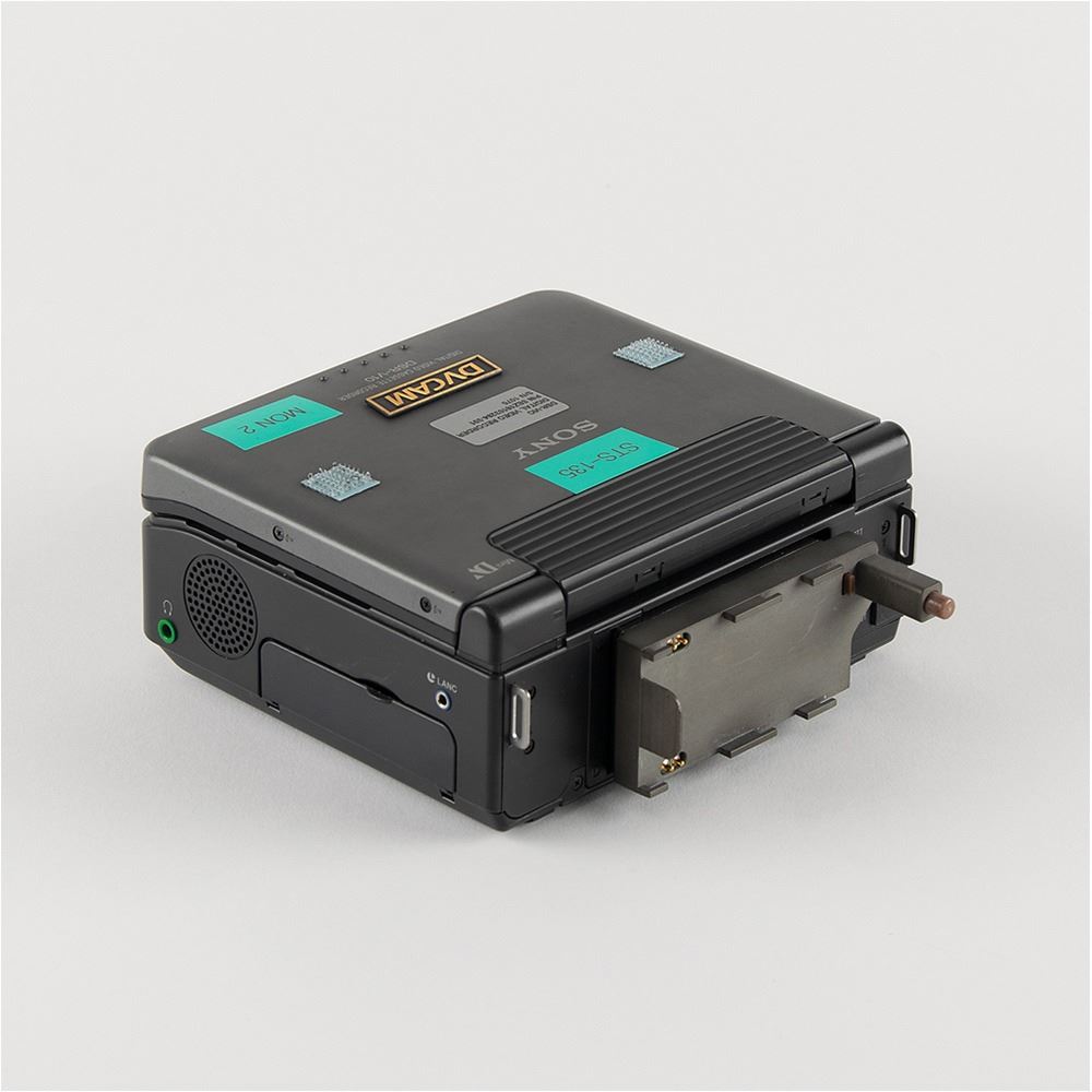Sony DSR-V10 DVCAM player/recorder presumed flown on the Orbiter Atlantis for the last mission of the Space Shuttle Program, STS-135. Affectionately known as a 'video walkman,' the device measures approximately 5.75è x 6.5è x 2.25è, and bears a NASA label on the top: "DSR-V10, Digital Video Recorder, P/N SEZ16103294-301, S/N 1075." It is also labeled "STS-135" and "MON 2," and bears several affixed Velcro swatches. A battery mount, marked "SEZ16103268-703, S/N 1087," is attached to the rear. The DSR-V10 formed part of the Space Shuttle's standard Closed Circuit Television (CCTV) system, allowing real-time viewing and recording of video from onboard cameras and from the EVA helmet camera system. Includes its bag with deaccession label.