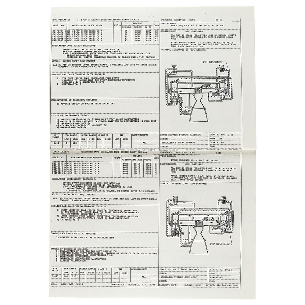 Group of seven technical reports and documents associated with STS-26, the Space Shuttle's 'Return to Flight' after the Challenger disaster, totaling hundreds of pages of technical data. Includes: a three-page Propulsion Laboratory "Predicted Key Events" document; a comprehensive "STS-26R Space Shuttle Main Engine Flight Operations Handbook"; a detailed "MPS Flight Measurement Location Document," with numerous fold-out charts and schematics; an "STS-26R Flight Readiness Firing Test Readiness Review" book from May 20, 1988; an "STS-26R NASA Level I/II Board SSME Flight Readiness Review" briefing book from September 14, 1988; an "STS-26R SSME L-2 Day Review, 9-27-88" review briefing from two days before launch; and a 148-page "Integrated Main Propulsion Final Report" prepared by Rockwell International in December 1988, evaluating performance of the subsystem on the flight. In overall very good to fine condition, with the cover sheet of one report detached but present. A scarce grouping of internal technical documents associated with the Shuttle's triumphant return to space.