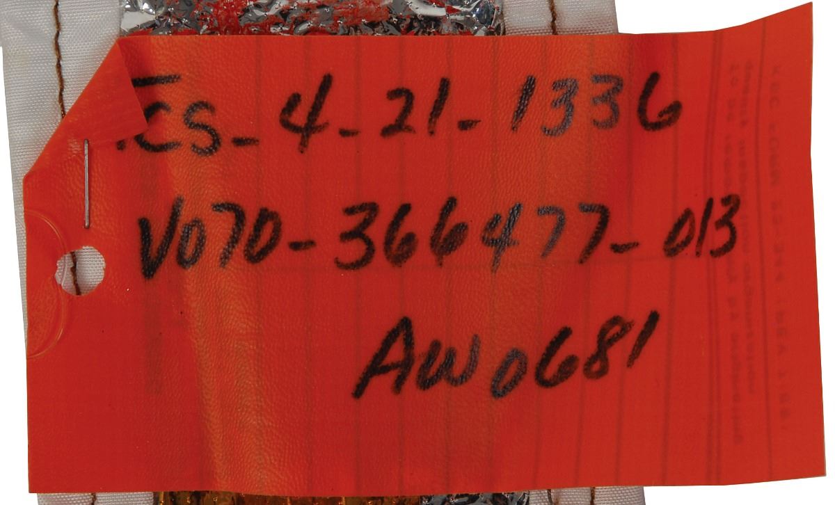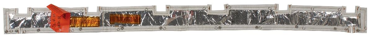Available to US bidders only. Flown solar shield thermal blanket carried on the Space Shuttle Atlantis during STS-86, measuring 48 x 3.25, numbered V070-366477-013 and OCN-03953-AW0681. A KSC non-conforming material tag is also attached to the blanket. In very good condition. Flown status presumed by shuttle specialist Ken Havekotte. From the collection of aerospace memorabilia specialist Ken Havekotte.
