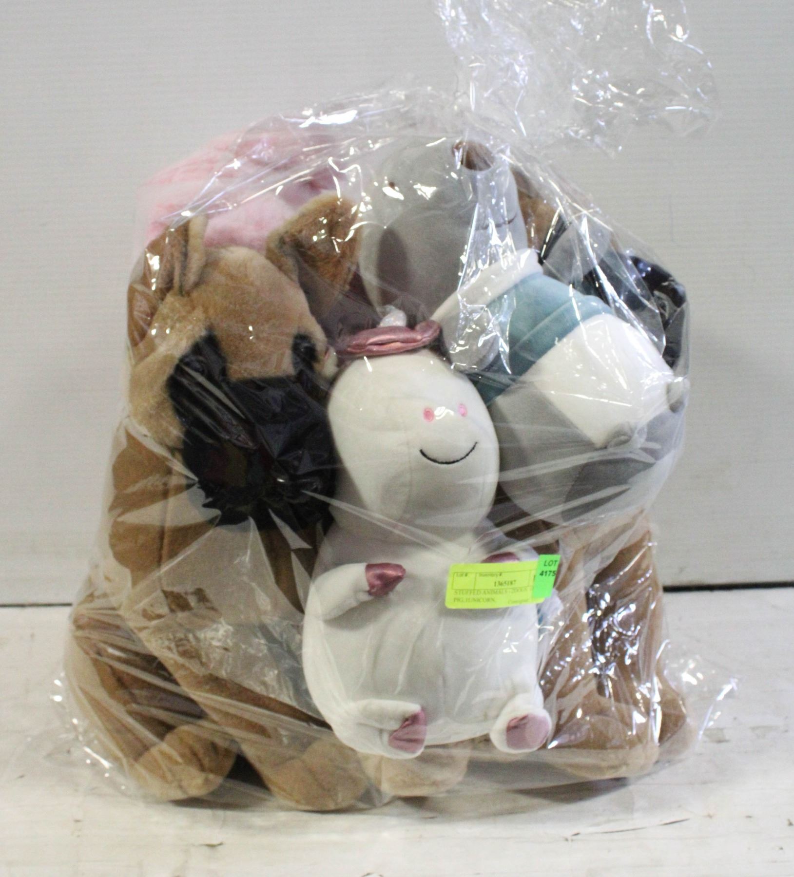 STUFFED ANIMALS - 2DOGS, 1PINK PIG,1UNICORN,