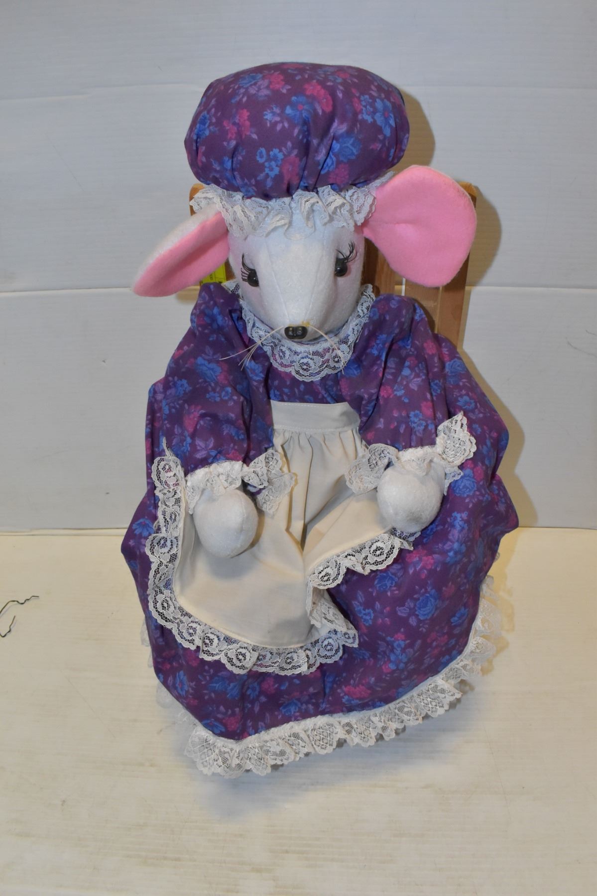 STUFFED MOUSE WITH WOOD CHAIR, 22" TALL