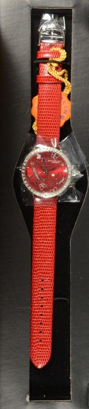 Fantasia Swiss Quartz 92545. Red Leather band, 40 jewels, Krysterna Crystal, 9"L x 16mm W, Case 35mm. Water Resistant 50m. New in Box! Never Worn! Est $150-$200