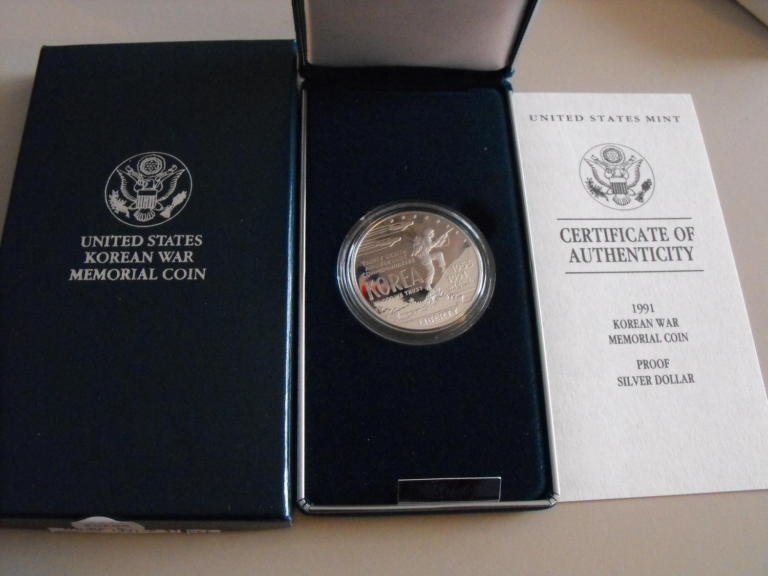 STUNNING $1 SILVER KOREAN WAR COMMEMORATIVE US MINT PAPERS & BOX