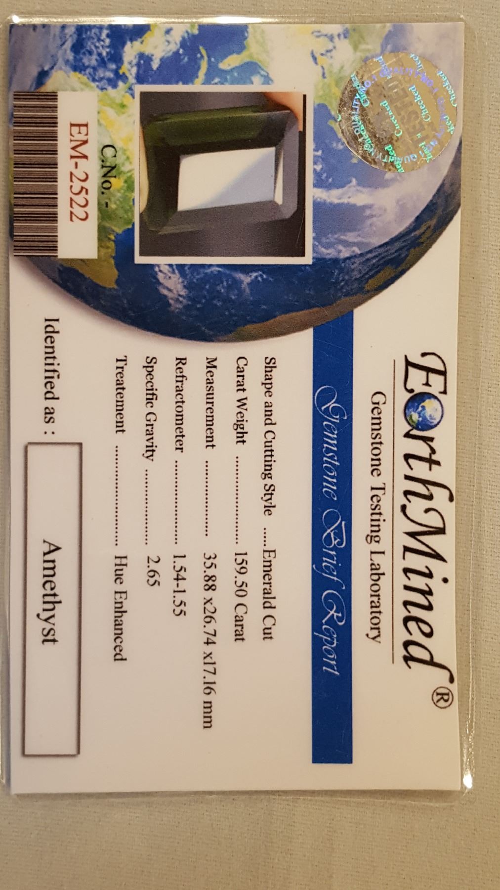 STUNNING 199.90 CT CERTIFIED AAA QUALITY GREEN AMETHYST. A FINE EMERALD CUT MEASURING 35.88 x 26.74 x 17.16 mm. DISPLAYING A VIVID SATURATION AND CLARITY. NEAR FLAWLESS. HEATED TO ENHANCE COLOR. PLEASE SEE CERTIFICATION FOR FURTHER DETAILS.