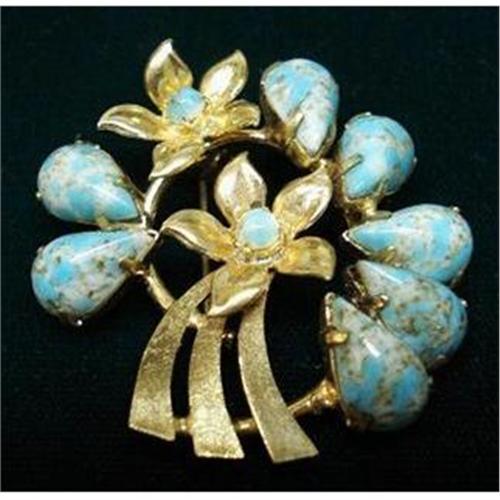 <tr><td>Title:STUNNING 40's JEWELED FLORAL BROOCH </td></tr>
