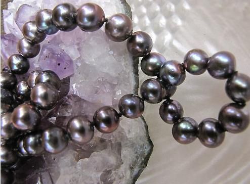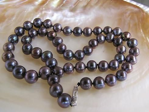 STUNNING 7 - 8 MM Akoya Pearl Necklace, lovely Blue, Green, Pink, and Lavender colors. Necklace measures approx 18 inches, full AAA+ luster, solid 14 kt gold filigree clasp. Mwf2219