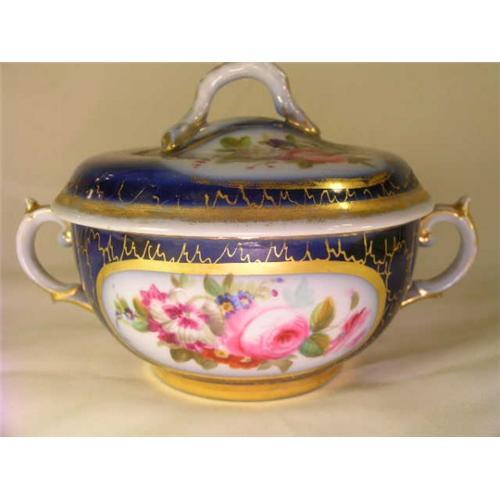 <table width="100%" border="0" cellspacing="0" cellpadding="4"><tr><td><em> </em></td></tr><tr> <td width="100%"> One of the loveliest hand painted lidded jars we have seen in a long time. This is a rich cobalt blue with accents of pure gold and exceptional hand painted roses and flowers, in the Sevres manner. The jar measures: 6 1/2 inches across and stands 4 3/4 inches high. Perfect for small biscuits, in very nice condition-no chips or cracks, some gold wear but in a nice manner. Has the look of early Worcester or Spode china. Absolutely a decorative piece to enjoy adding to your collection of early porcelain pieces. </td></tr><tr> <td> </td></tr><tr> <td>Reference #: TAPB1182F_</td></tr><tr><td>Condition:Very Fine ALL ORIGINAL</td></tr><tr><td>Year:1880s-1910s</td></tr><tr><td>Title:STUNNING ANTIQUE HAND PAINTED LIDDED JAR ROSES</td></tr><tr><td>Location:WA</td></tr></table>