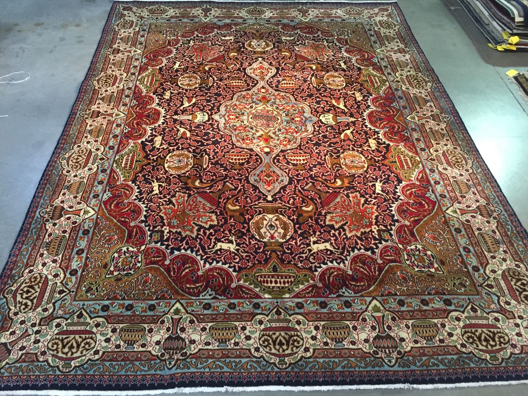 9'.7"X13'." Magnificent one of a kind Masterpc Authentic Persian Kashmar Archaeological artifacts "Zir-E-Khaki" pattern Antique rug, 100% natural Veggie Dyes Wool pile multi colors , Hand Knotted in Iran,