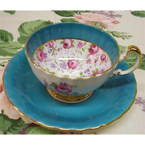 GORGEOUS PEDESTAL CUP AND SAUCER DEPICTING BEAUTIFUL FLORAL CHINTZ, MADE BY AYNSLEY OF ENGLAND, as per picture, EXCELLENT MINT CONDITION IT APPEARS HARDLY USED, US BUYER TO PAY 7.00 FOR SHIPPING PLUS INSURANCE.THANKS.