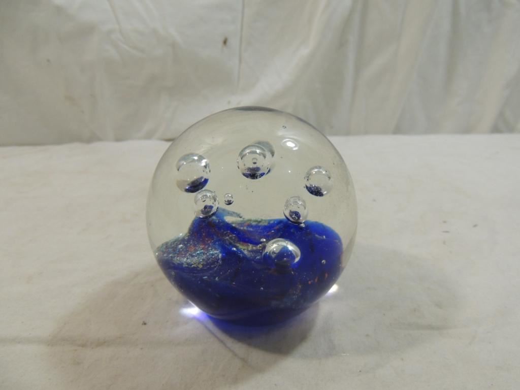 GLASS PAPERWEIGHT, BUBBLES, WAVE LIKE DESIGN COLLECTIBLE PAPERWEIGHT, DECORATIVE, COLLECTORS PAPERWEIGHT AS SHOWN SEE PHOTO FOR MORE DETAILS.