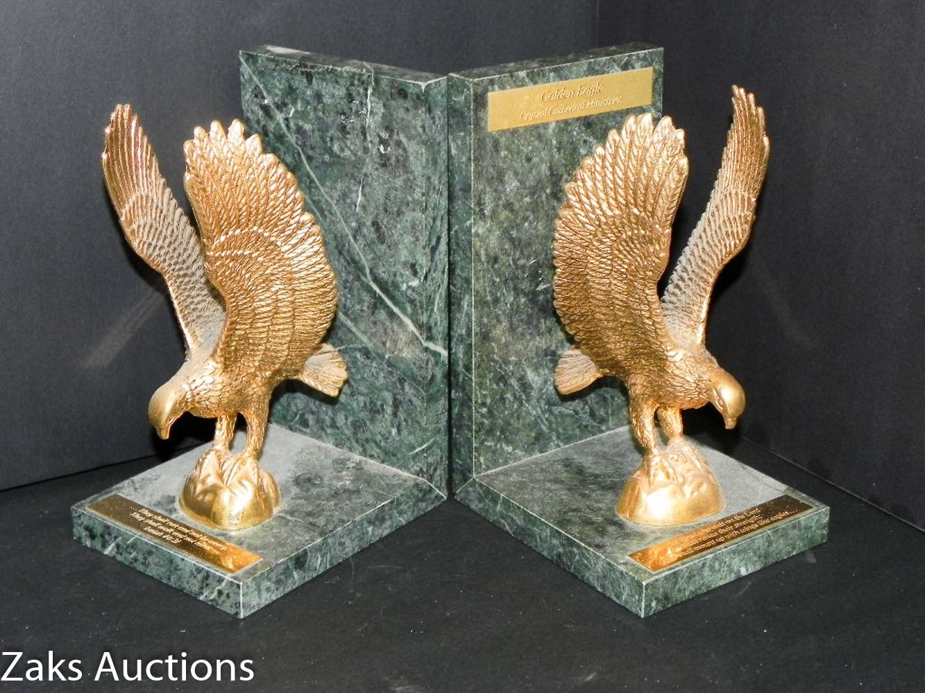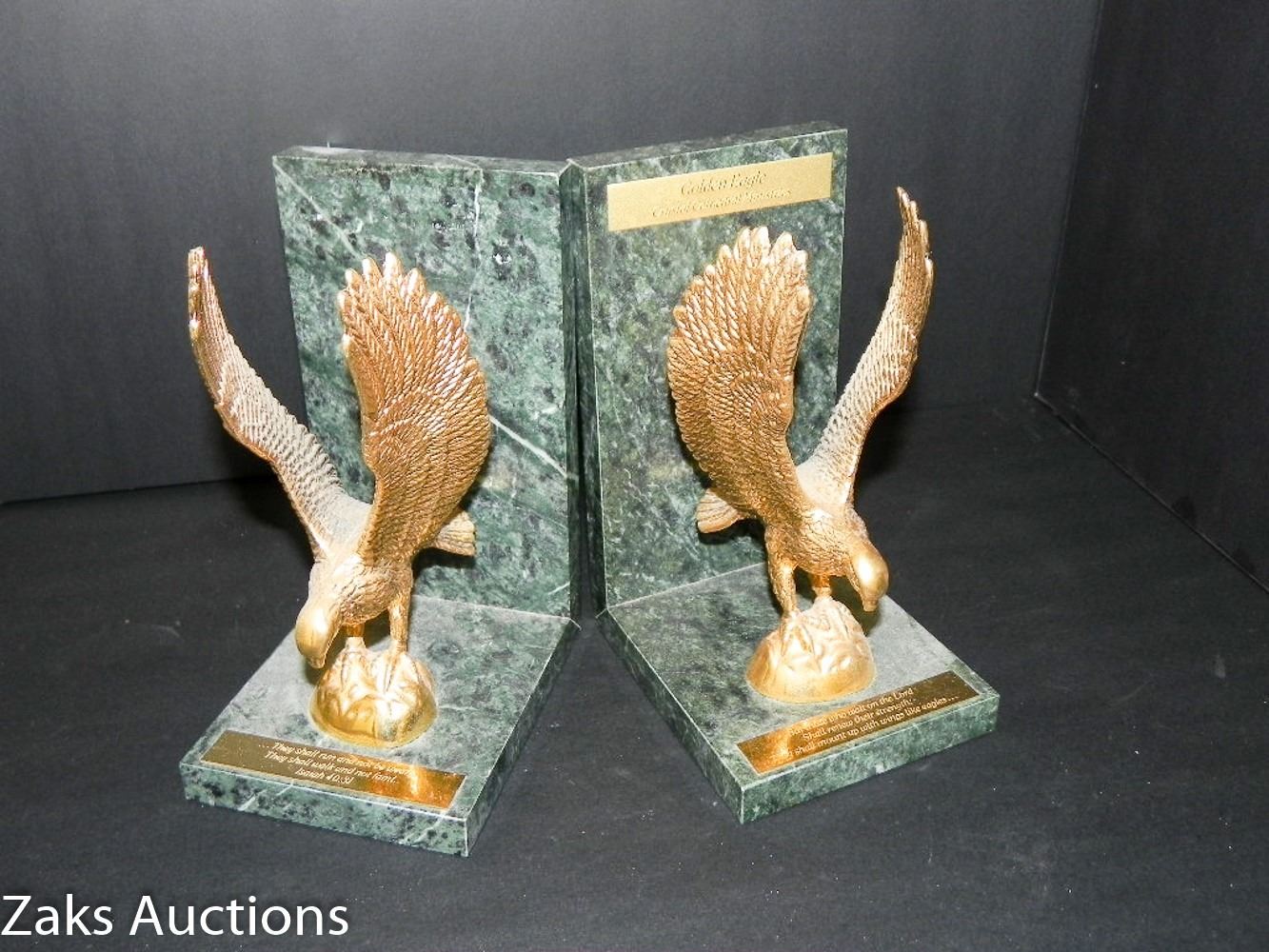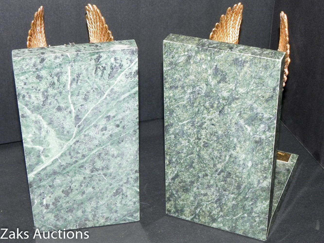 STUNNING GRANITE AND BRASS EAGLE BOOK ENDS