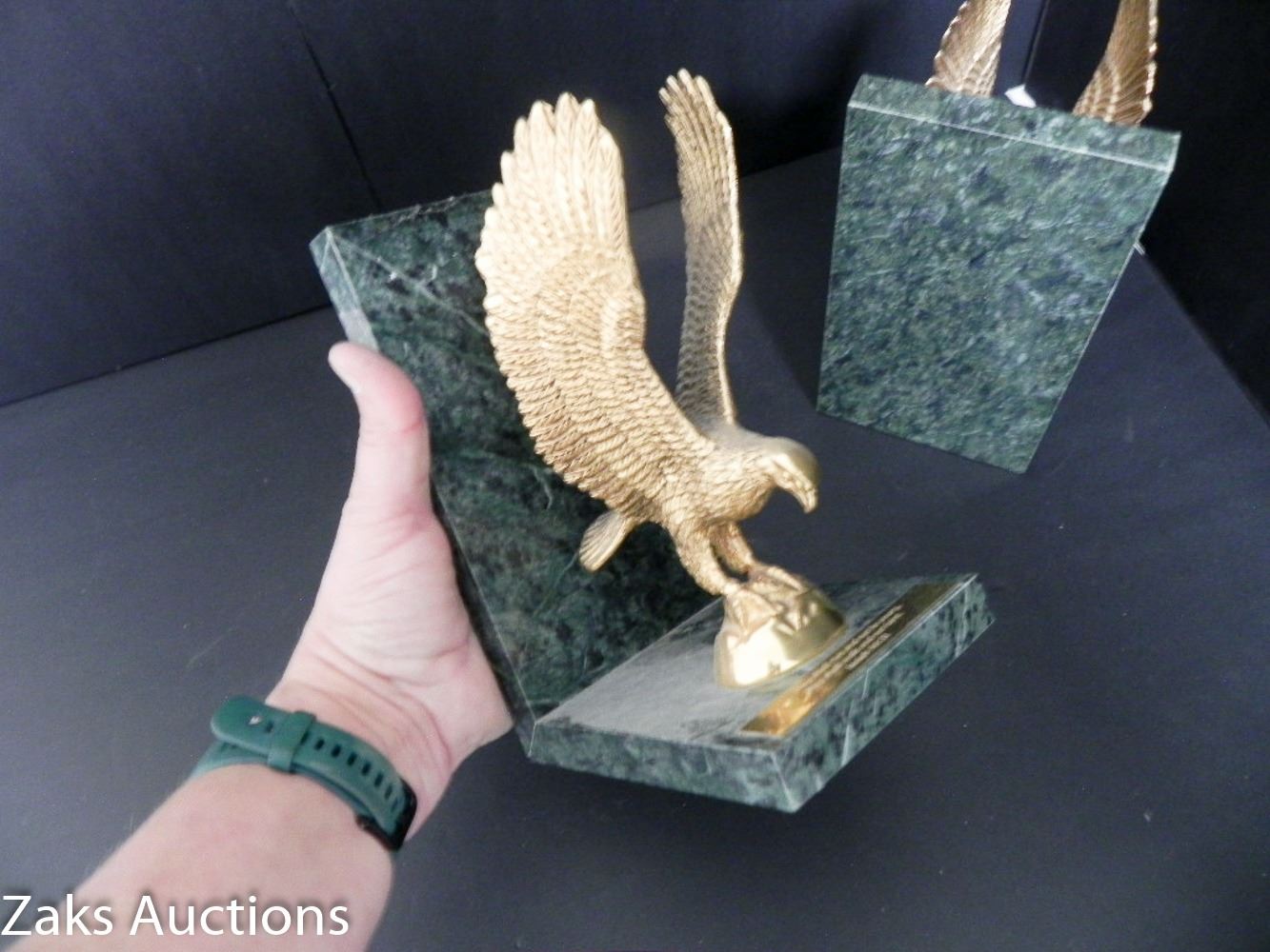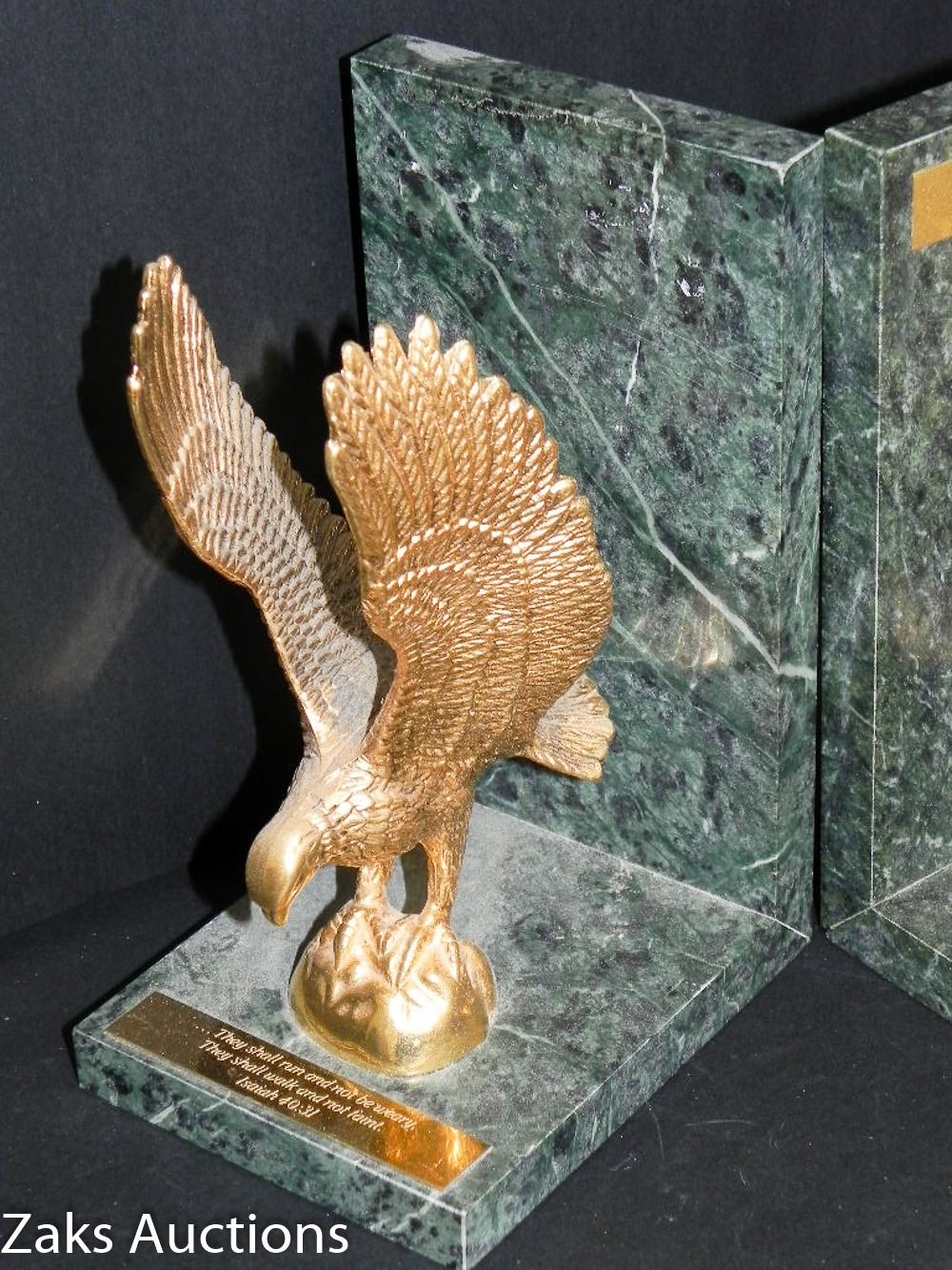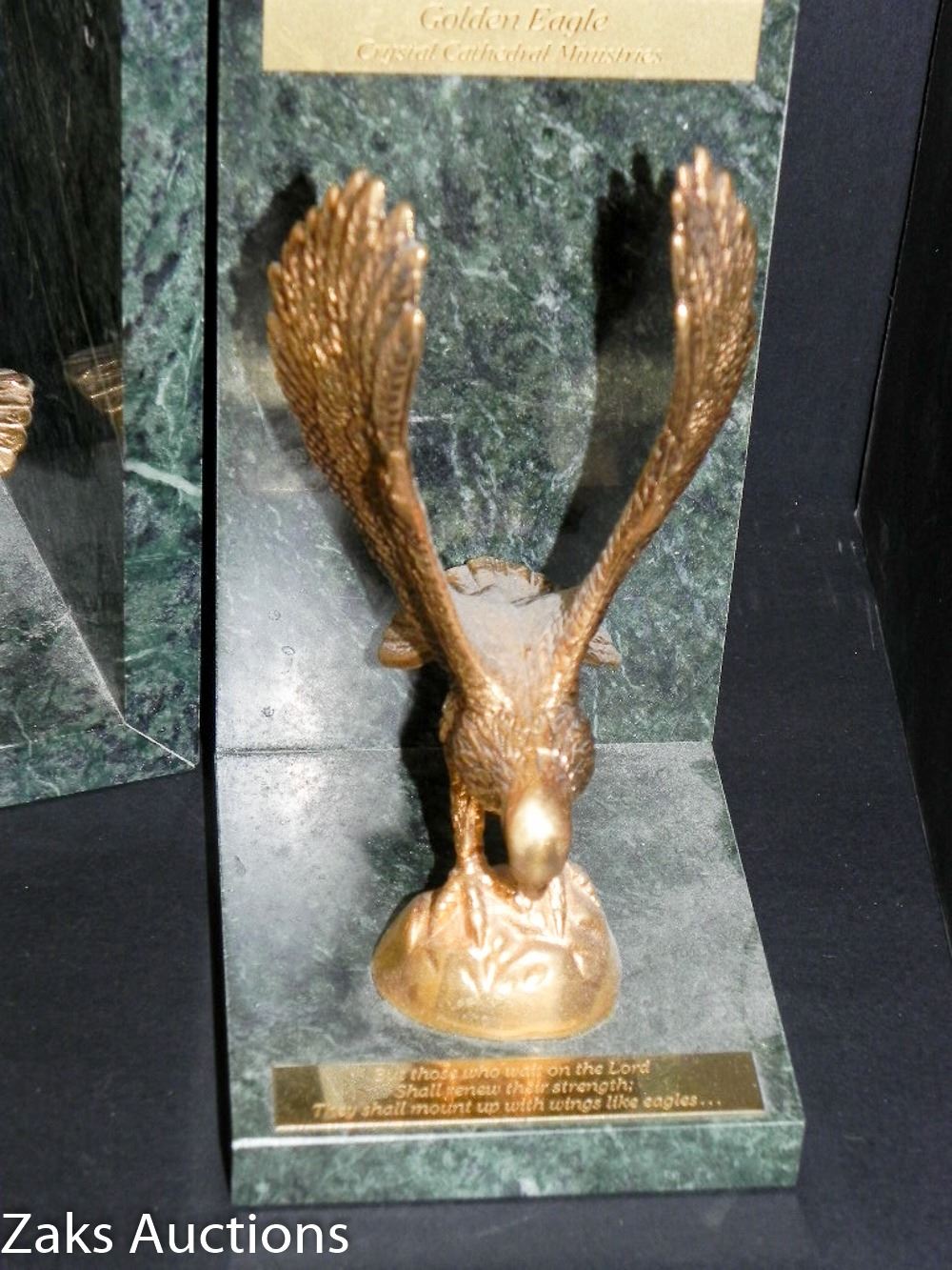 STUNNING GRANITE AND BRASS EAGLE BOOK ENDS
