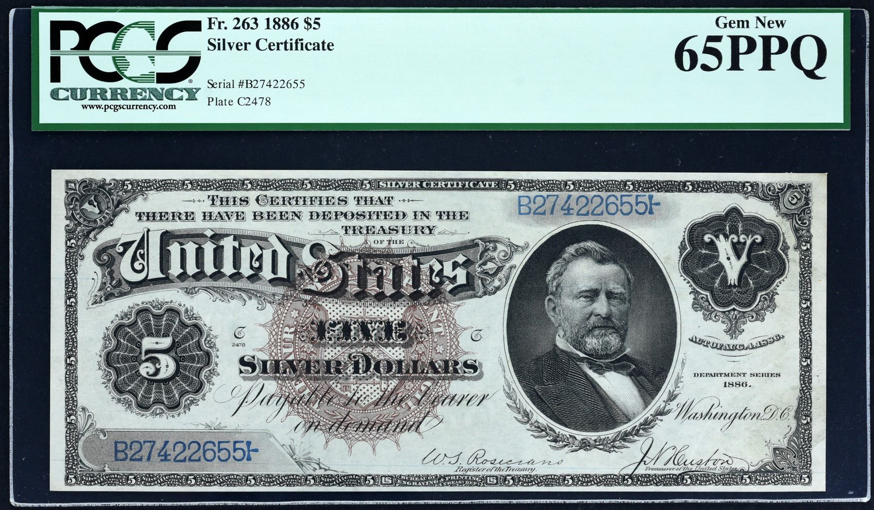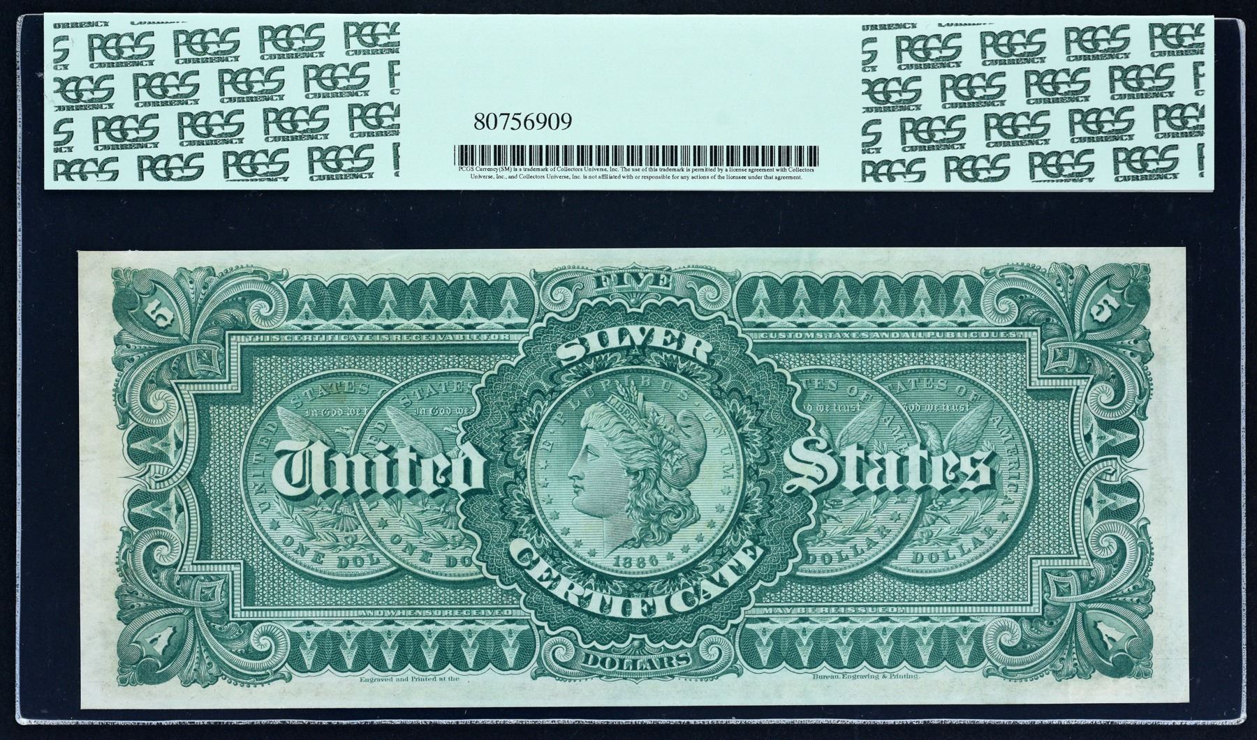 Title: STUNNING MORGAN DOLLAR BACK NOTE Fr. 263 $5 1886 Silver Certificate PCGS Gem 65 PPQ