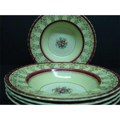 PRETTY SET OF 5 LARGE RIM DEEP SOUP BOWLS, EUROPIAN STYLE,MADE BY MYOTT, as per images, Excellent condition,BUT FOR A TINY NICK UNDER THE RIM ON ONE OF THE BOWLS,Each measuring about 7 3/4 inch in diam., and 1 1/2 inch high,US Buyer to pay 12.00 for shipping plus insurance.THANKS.