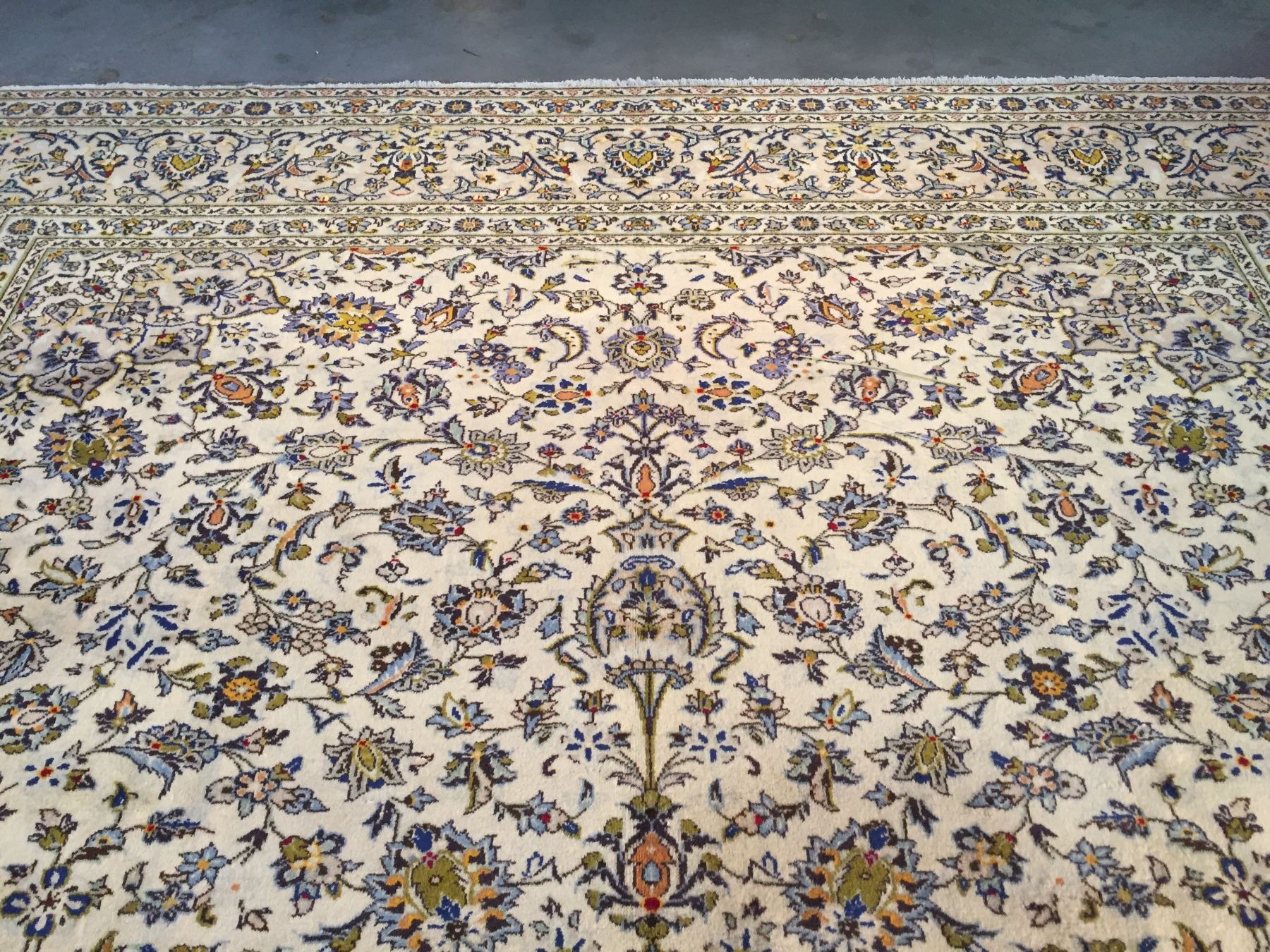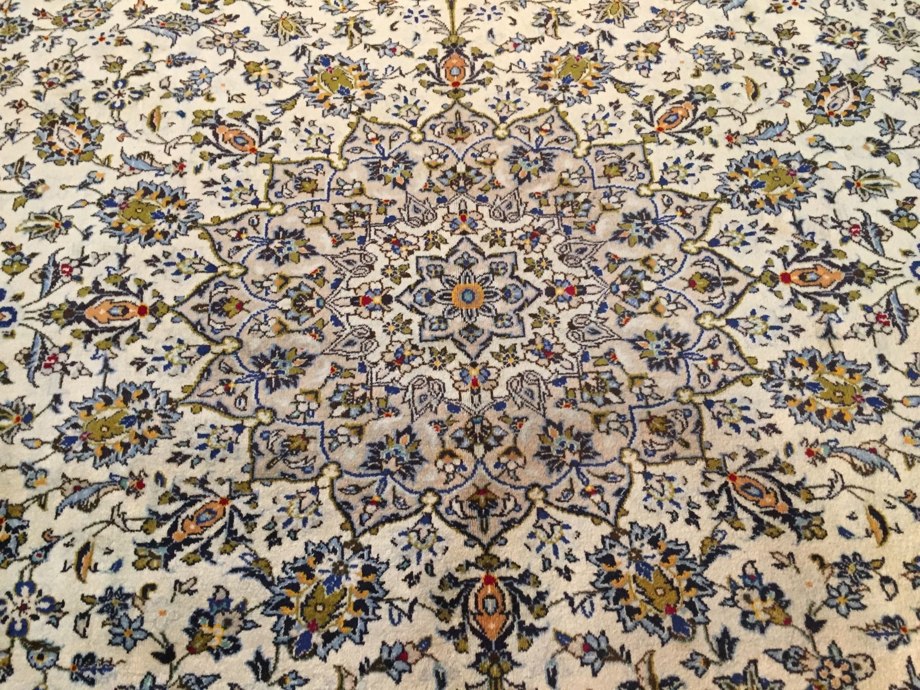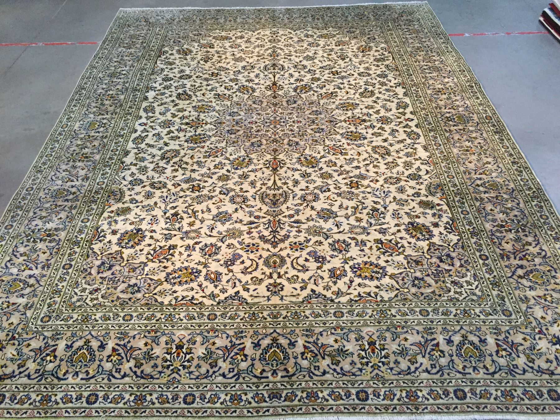 9'.8"X13'.1" Beautiful Authentic Antique Persian Kashan rug 100% wool pile ,excellent condition in, Neutral, Ivory , and multi accent colors Hand Knotted in Iran Circa 1960