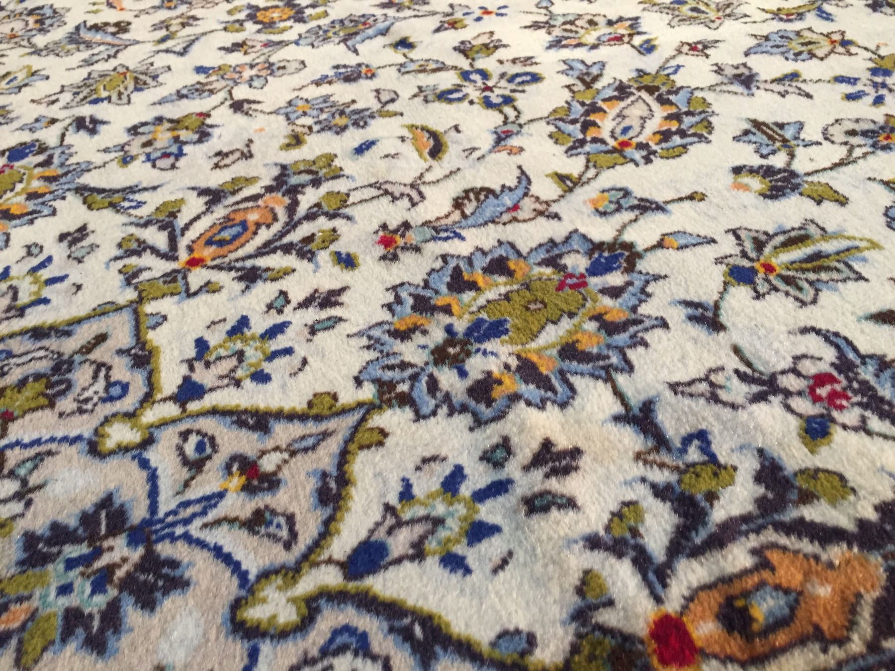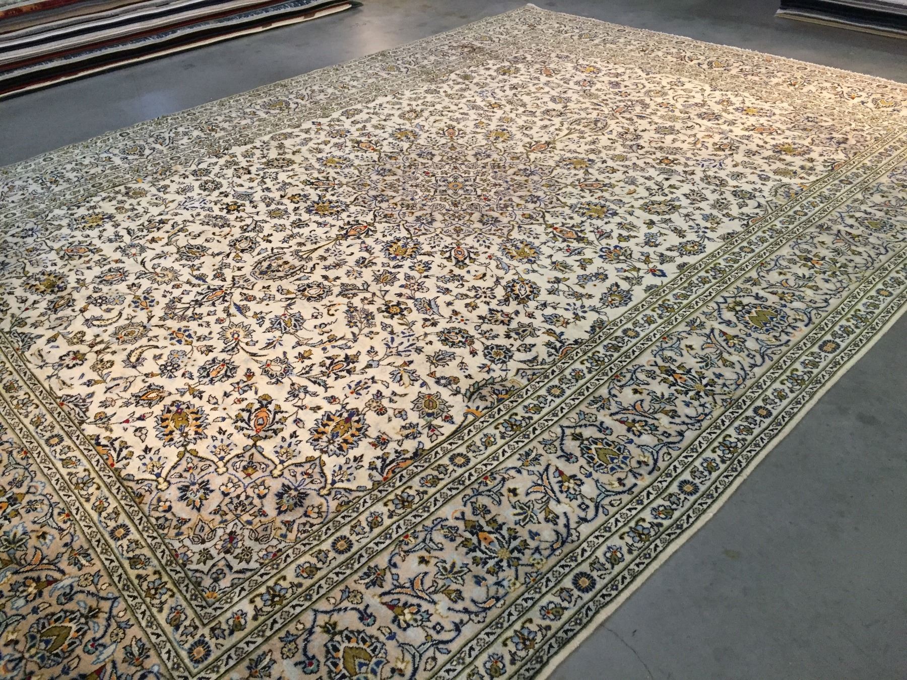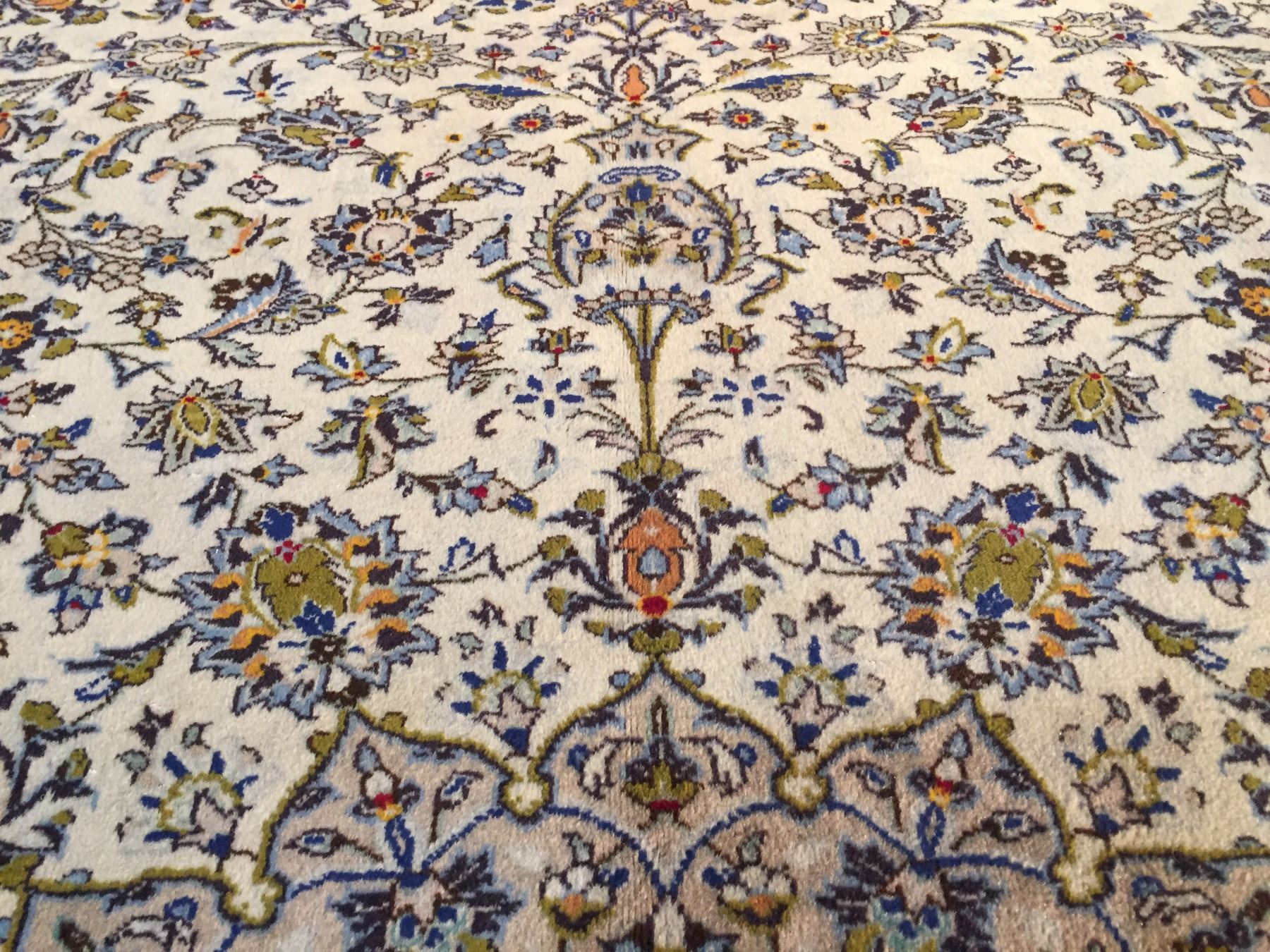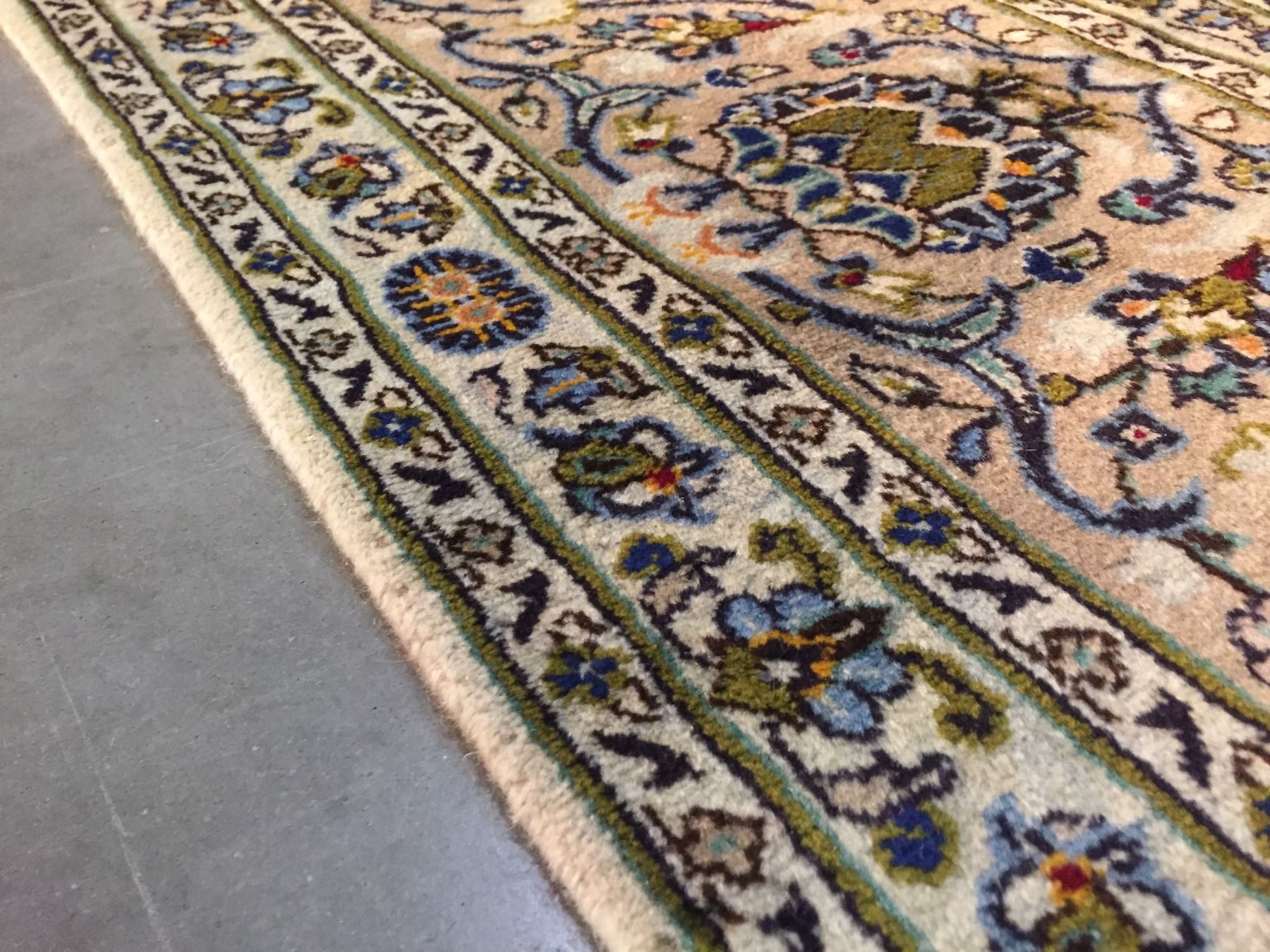 9'.8"X13'.1" Beautiful Authentic Antique Persian Kashan rug 100% wool pile ,excellent condition in, Neutral, Ivory , and multi accent colors Hand Knotted in Iran Circa 1960
