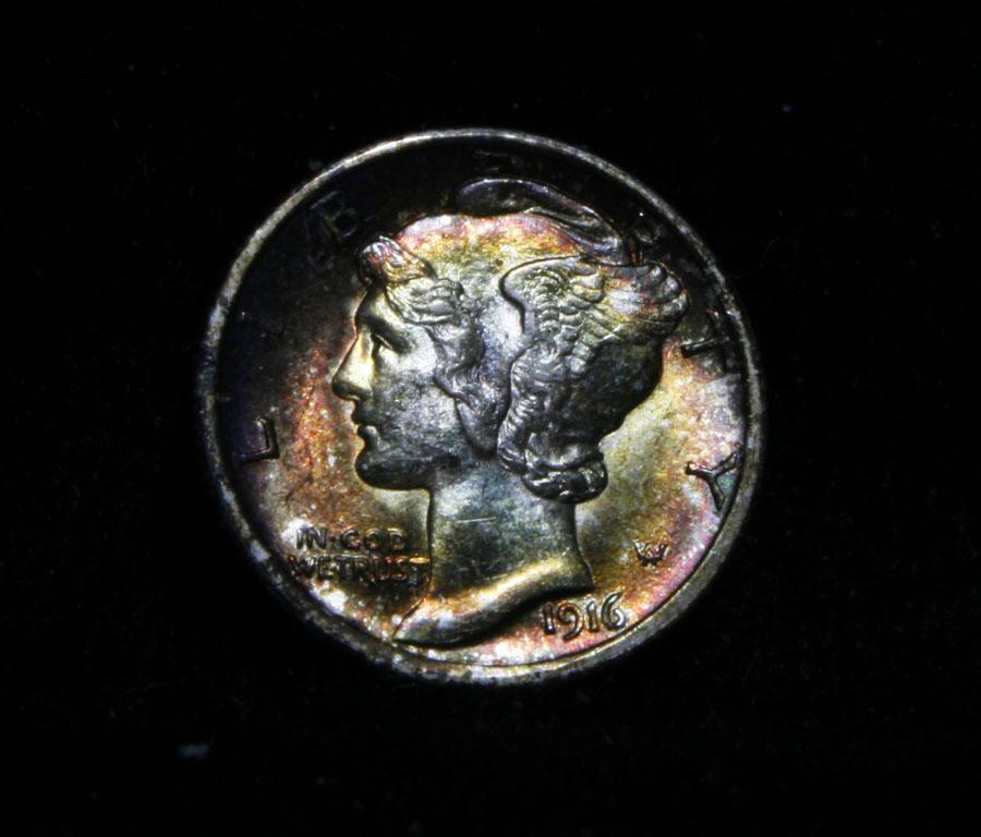 STUNNING Rainbow Toned, all Original example. Of course this has my buy back guarantee that it is Original and Gradable. This is the first year of the Liberty Head or "Mercury" Dime. This Example has the Elusive FULL SPLIT BANDS. Coin World's Coin Values lists ms65 FSB as $200 and The Wholesale Greysheet lists ms65FSB as $130. But both of those figures are for common white examples and this coin has superior eye appeal and Great all Original colors. Estimated Value $200