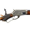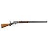MARLIN 1881 RIFLE EX. WES ADAMS COLLECTION Cal. 40-65. S# 22820. This high condition rifle is fitted with an extremely rare 30” octagonal to round heavy barrel with full magazine, sporting bead front sight, fire blue semi buckhorn rear sight, Lyman No. 15 windage tang sight with rigid stem & folding eyepiece. The case-colored action is hand engraved with a pattern that most closely matches the grade 2 styling and was likely engraved by John Ulrich. The right side features a vignette containing a detailed forest scene with a bull moose in stride. The space surrounding is decorated with arabesque scroll terminated with straight line and fancy chip borders that continue to the upper and lower receiver areas. The left side holds a vignette containing the head of a bull moose and adorned with matching pattern scroll and borders. The serial number is encircled with a splash of engraved geometric & scroll designs. It is mounted with an attractive walnut stock set that is factory checkered in the B pattern with a serpentine pistol grip and finalizes with a case-colored smooth curved steel buttplate and forearm cap. CONDITION: Overall, an extremely fine rare rifle with 95%+ original blue showing some light high edge wear, mild thinning and a few minor handling marks. The frame retains a very nice 90% coverage of the factory case colors with some light fading on the top and the bottom fading to silver. The lever has very nice case coloring while the hammer and buttplate have faded. The stock set still has very good original finish showing some mild handling marks. The bore is bright and shiny with nice sharp rifling. PROVENANCE: Ex- Wes Adams Collection, Spectacular example from the William Blount Collection of extraordinary Marlins. (01-25285/ZAL). ANTIQUE. $20,000- 30,000.