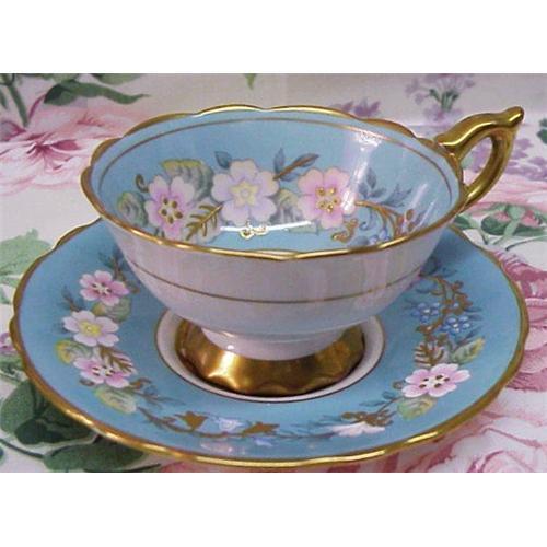 GORGEOUS - FANCY PEDESTAL, CUP AND SAUCER DEPICTING MOST GLORIOUS FLORAL DECORATIONS, SUCH QUALITY, UNIQUINESS AND BEAUTY,VERY RARE GOLD RAISED DECORATIONS, MADE BY AYNSLEY OF ENGLAND, EXCELLENT MINT CONDITION IT APPEARS NEVER USED, US BUYER TO PAY 7.00 FOR SHIPPING PLUS INSURANCE.THANKS.