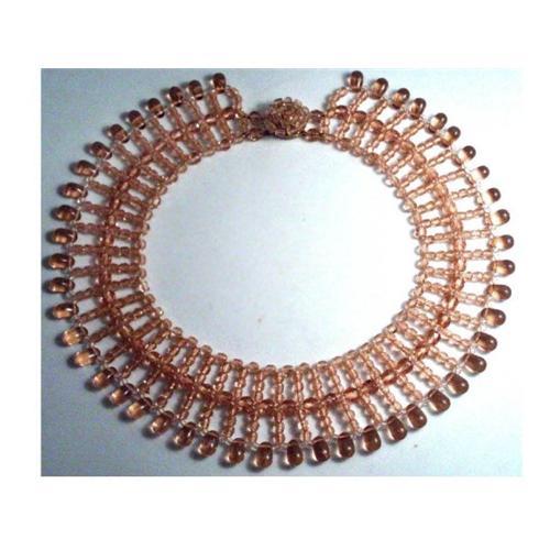 </font></strong>Rose glass is something you see in depression glass ware but not often in old jewelery. This piece has over 600 beads of cut and pressed real rose glass beads. IT has such nice weight to it and is so well made it just fits you like a glove. The width of this amazing piece is 1 1/2" and the length on the inside of the neck is 14". The clasp is a cluster with a hidden slide in clasp marked Made in West Germany. I guarantee this one will make you the belle of the ball becuase it just radiates warmth and color. IT is in great condition as well and is really well made. </font>