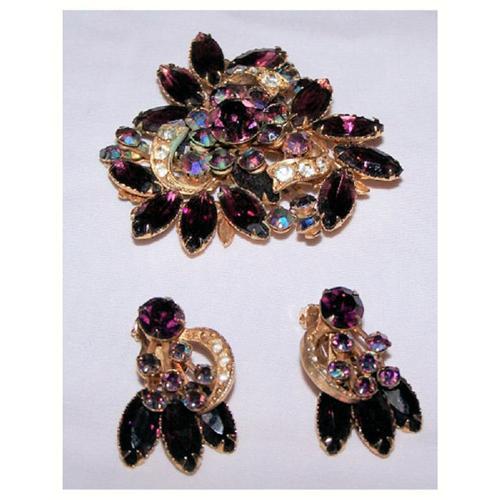 Up for sale is a stunning ~Juliana~ Aurora Borealis and Rhinestone 2-piece set. This is one drop dead gorgeous set. All the stones are prong set in goldtone. The front and back are in excellent condition. There are no missing, discolored or dead stones in either the brooch or the earrings. I guarantee you that you will NOT be disappointed in owning this set!